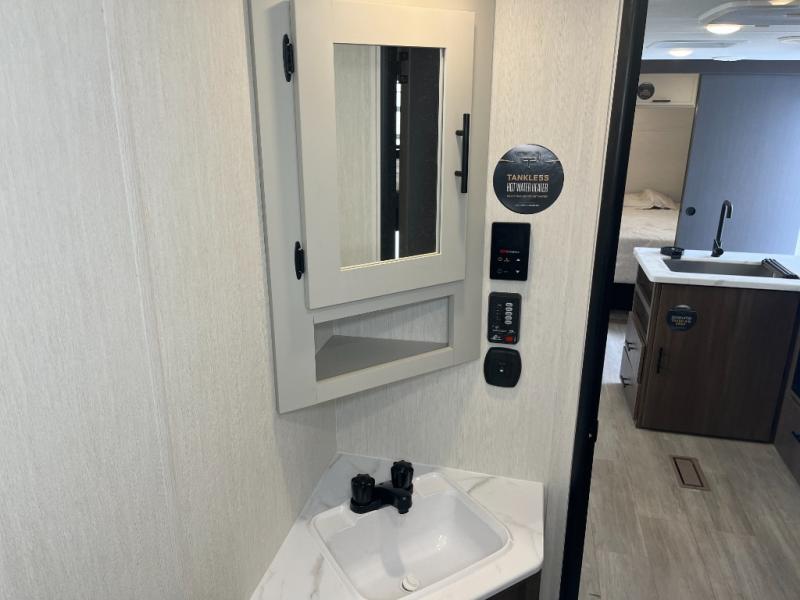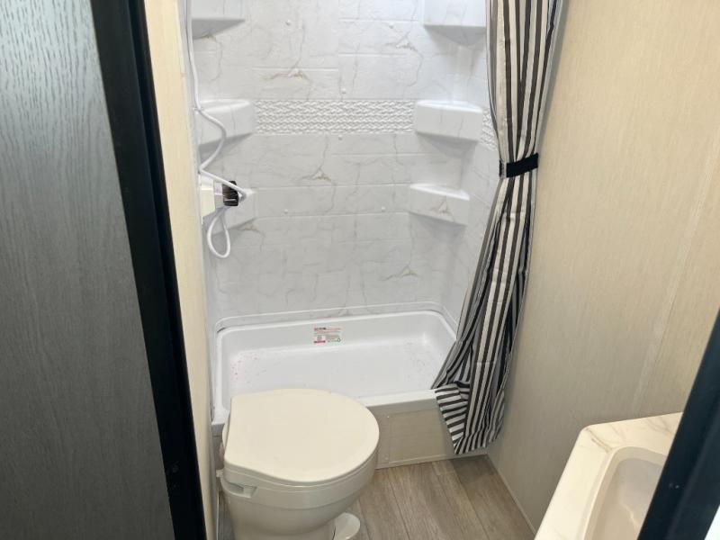 With any Avenger travel trailer by Prime Time RV, you will find innovation, a solid build, and comfort at every turn. Each model is built with Tuff Coat on the exterior metal, a fully enclosed underbelly, and a PVC roof membrane to help extend the life of your trailer. You will also find automotive name badging on the exterior, along with an exterior shower, front rail LED light strips, plus an XL padded entry grab handle to name a few conveniences. There are plenty of storage spaces inside, as well as Congoleum flooring and woven PVC marine grade slide out flooring, a designer shower surround, and seamless pressed countertops. You are sure to appreciate the onboard water filtration system, tankless water heater, plus 30K BTU furnace and 15K ducted A/C to help keep you comfortable.