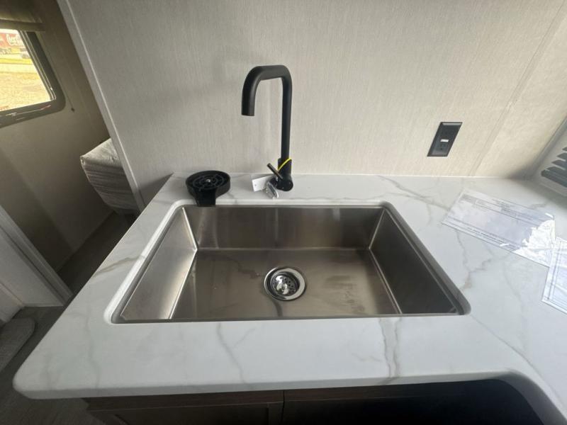 With any Avenger travel trailer by Prime Time RV, you will find innovation, a solid build, and comfort at every turn. Each model is built with Tuff Coat on the exterior metal, a fully enclosed underbelly, and a PVC roof membrane to help extend the life of your trailer. You will also find automotive name badging on the exterior, along with an exterior shower, front rail LED light strips, plus an XL padded entry grab handle to name a few conveniences. There are plenty of storage spaces inside, as well as Congoleum flooring and woven PVC marine grade slide out flooring, a designer shower surround, and seamless pressed countertops. You are sure to appreciate the onboard water filtration system, tankless water heater, plus 30K BTU furnace and 15K ducted A/C to help keep you comfortable.