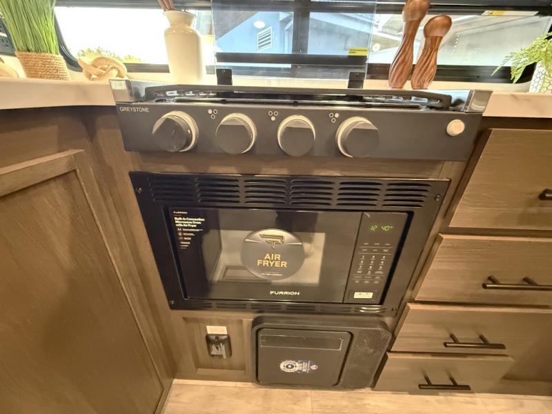 With any Avenger travel trailer by Prime Time RV, you will find innovation, a solid build, and comfort at every turn. Each model is built with Tuff Coat on the exterior metal, a fully enclosed underbelly, and a PVC roof membrane to help extend the life of your trailer. You will also find automotive name badging on the exterior, along with an exterior shower, front rail LED light strips, plus an XL padded entry grab handle to name a few conveniences. There are plenty of storage spaces inside, as well as Congoleum flooring and woven PVC marine grade slide out flooring, a designer shower surround, and seamless pressed countertops. You are sure to appreciate the onboard water filtration system, tankless water heater, plus 30K BTU furnace and 15K ducted A/C to help keep you comfortable.
