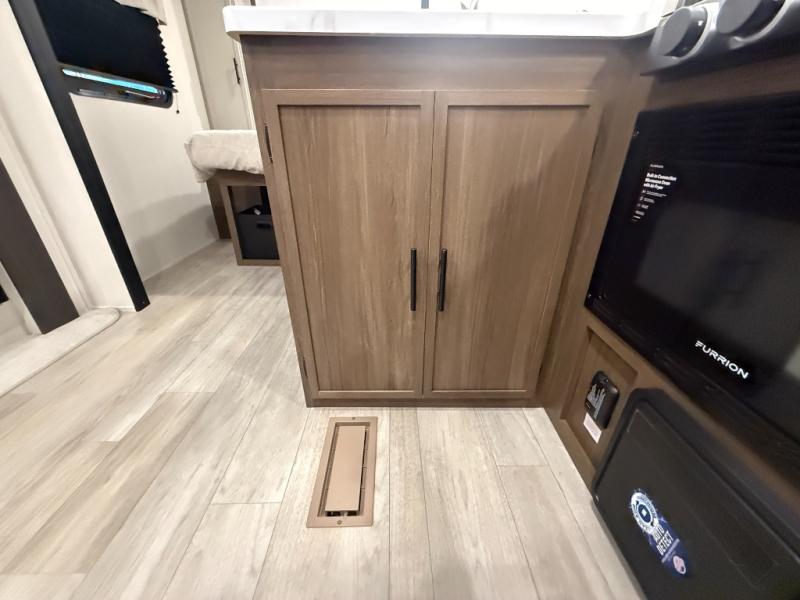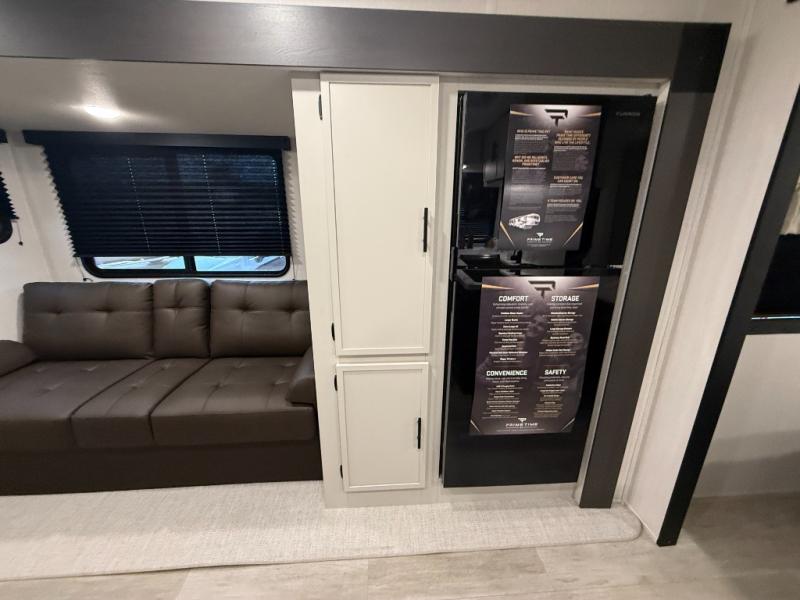 With any Avenger travel trailer by Prime Time RV, you will find innovation, a solid build, and comfort at every turn. Each model is built with Tuff Coat on the exterior metal, a fully enclosed underbelly, and a PVC roof membrane to help extend the life of your trailer. You will also find automotive name badging on the exterior, along with an exterior shower, front rail LED light strips, plus an XL padded entry grab handle to name a few conveniences. There are plenty of storage spaces inside, as well as Congoleum flooring and woven PVC marine grade slide out flooring, a designer shower surround, and seamless pressed countertops. You are sure to appreciate the onboard water filtration system, tankless water heater, plus 30K BTU furnace and 15K ducted A/C to help keep you comfortable.
