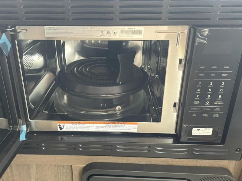 The front private bedroom includes a queen bed, dual wardrobes, and overhead cabinets for storage. This model is also prepped for a washer and dryer, giving you the option to add even more home-like convenience. The large slide out opens up the living area, making the space feel open and inviting.