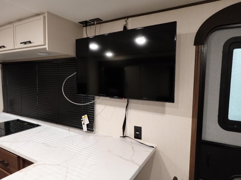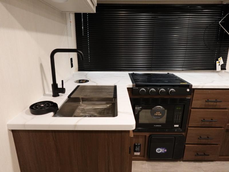 With any Avenger travel trailer by Prime Time RV, you will find innovation, a solid build, and comfort at every turn. Each model is built with Tuff Coat on the exterior metal, a fully enclosed underbelly, and a PVC roof membrane to help extend the life of your trailer. You will also find automotive name badging on the exterior, along with an exterior shower, front rail LED light strips, plus an XL padded entry grab handle to name a few conveniences. There are plenty of storage spaces inside, as well as Congoleum flooring and woven PVC marine grade slide out flooring, a designer shower surround, and seamless pressed countertops. You are sure to appreciate the onboard water filtration system, tankless water heater, plus 30K BTU furnace and 15K ducted A/C to help keep you comfortable.