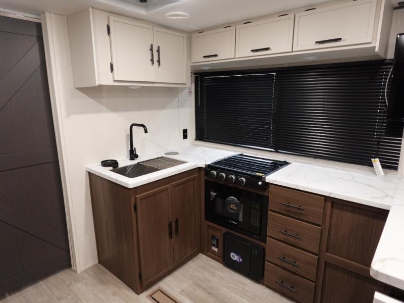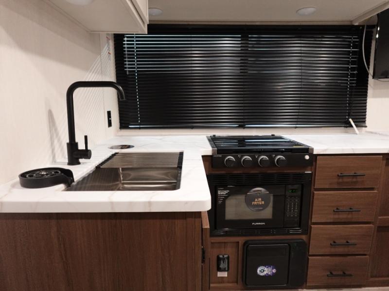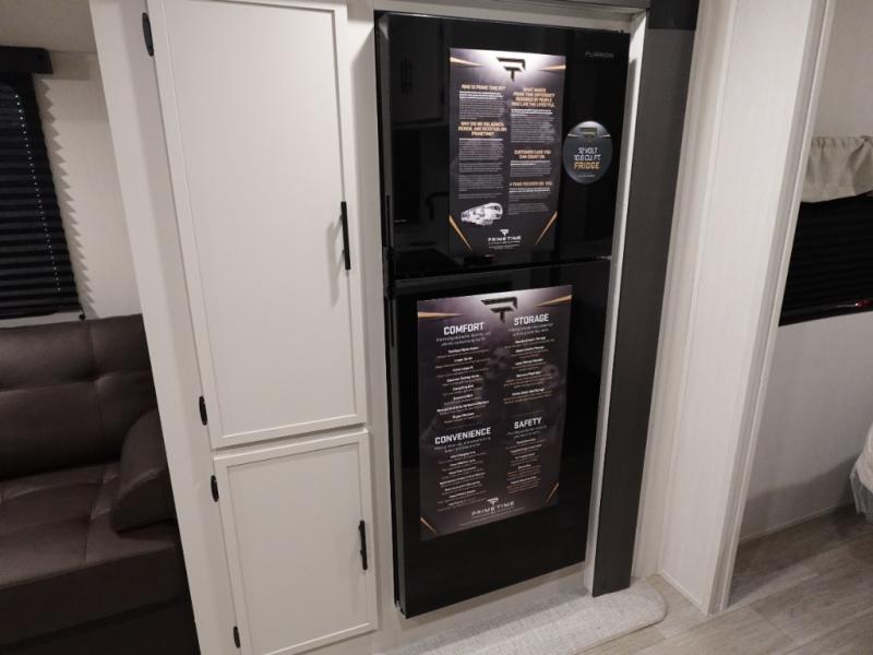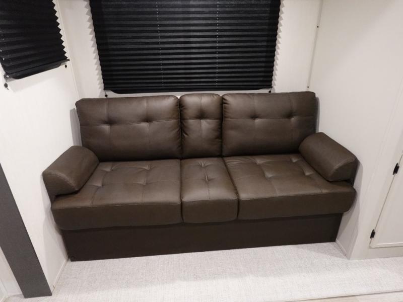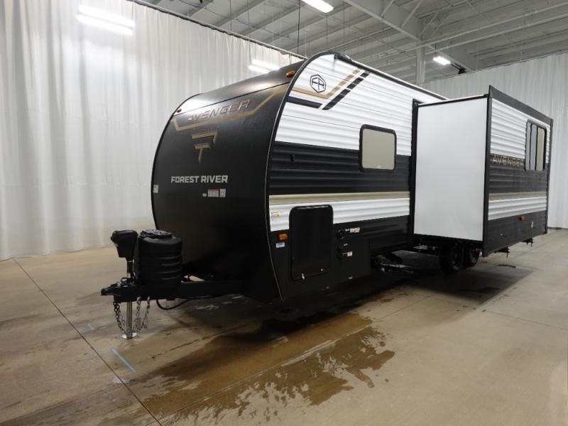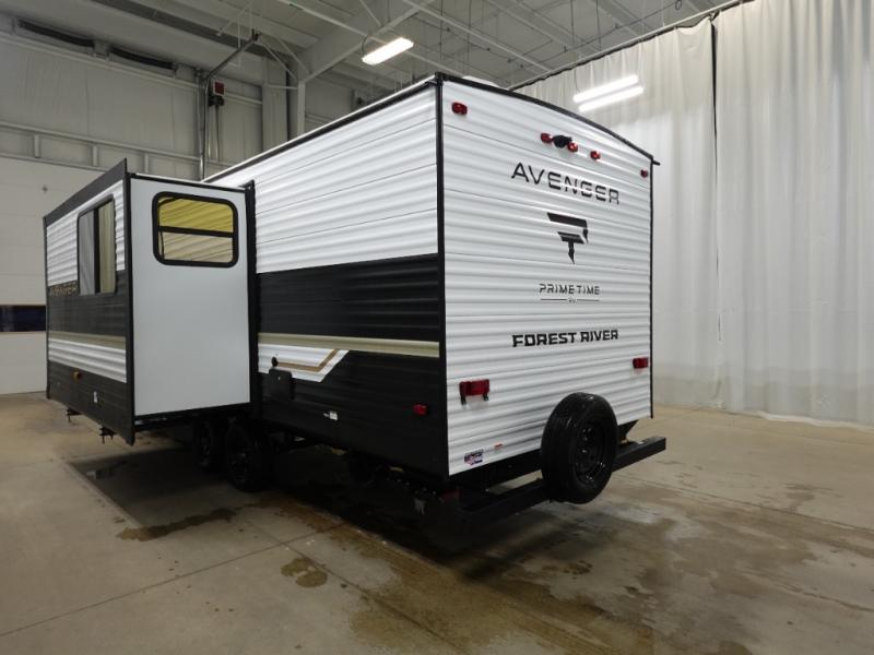 With any Avenger travel trailer by Prime Time RV, you will find innovation, a solid build, and comfort at every turn. Each model is built with Tuff Coat on the exterior metal, a fully enclosed underbelly, and a PVC roof membrane to help extend the life of your trailer. You will also find automotive name badging on the exterior, along with an exterior shower, front rail LED light strips, plus an XL padded entry grab handle to name a few conveniences. There are plenty of storage spaces inside, as well as Congoleum flooring and woven PVC marine grade slide out flooring, a designer shower surround, and seamless pressed countertops. You are sure to appreciate the onboard water filtration system, tankless water heater, plus 30K BTU furnace and 15K ducted A/C to help keep you comfortable.