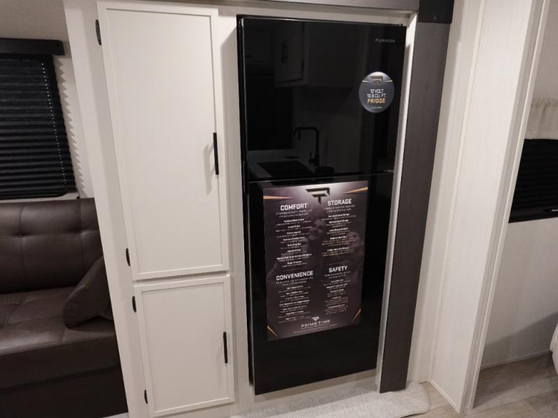 With any Avenger travel trailer by Prime Time RV, you will find innovation, a solid build, and comfort at every turn. Each model is built with Tuff Coat on the exterior metal, a fully enclosed underbelly, and a PVC roof membrane to help extend the life of your trailer. You will also find automotive name badging on the exterior, along with an exterior shower, front rail LED light strips, plus an XL padded entry grab handle to name a few conveniences. There are plenty of storage spaces inside, as well as Congoleum flooring and woven PVC marine grade slide out flooring, a designer shower surround, and seamless pressed countertops. You are sure to appreciate the onboard water filtration system, tankless water heater, plus 30K BTU furnace and 15K ducted A/C to help keep you comfortable.