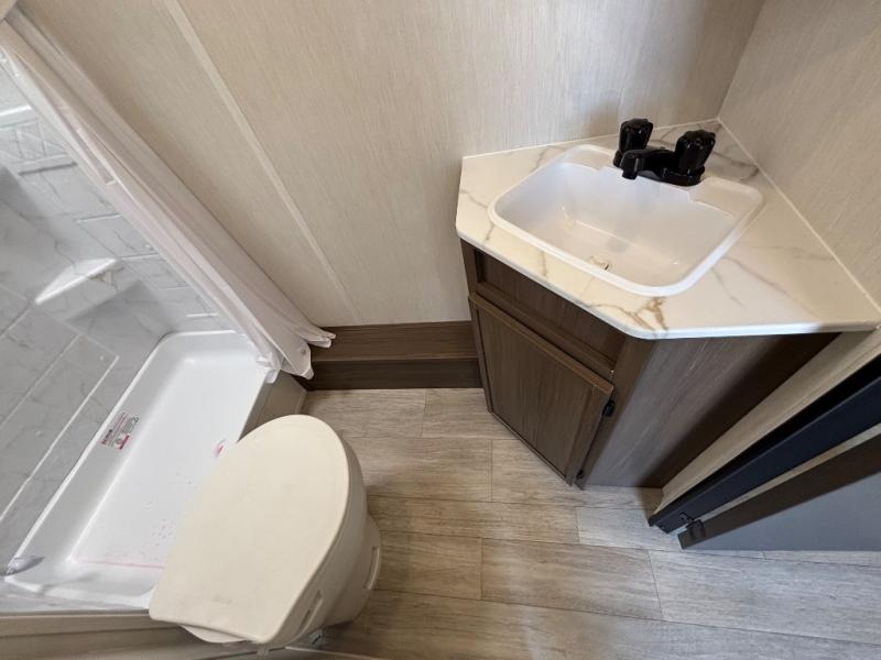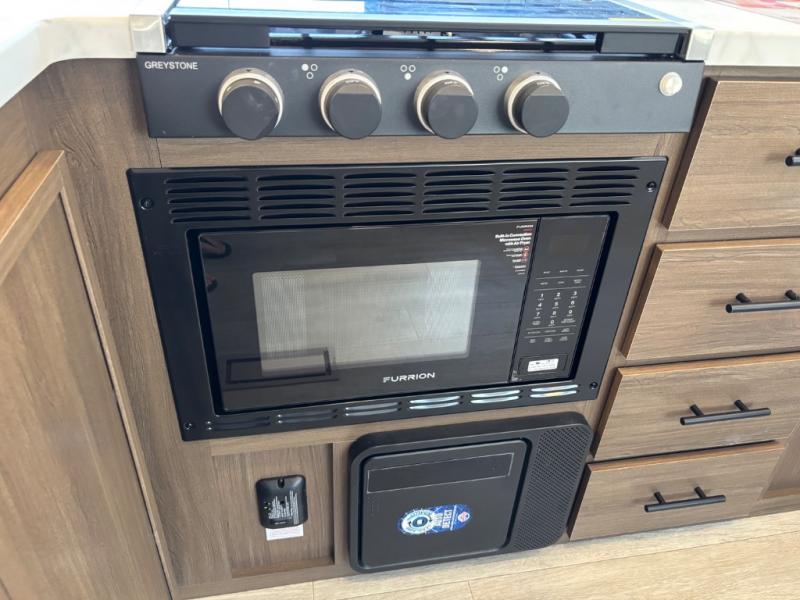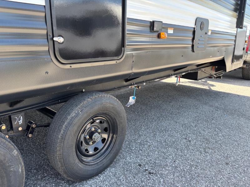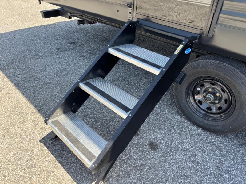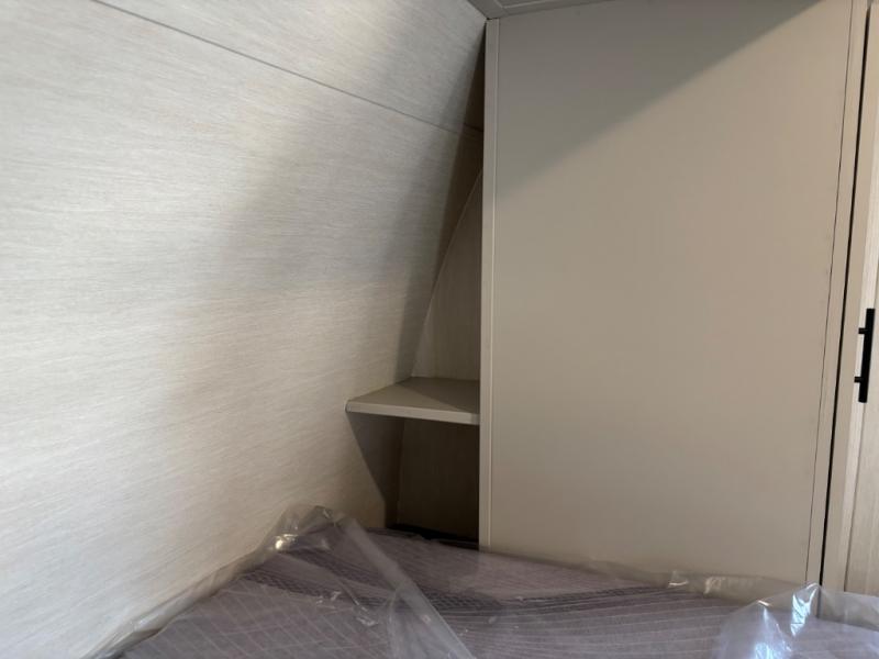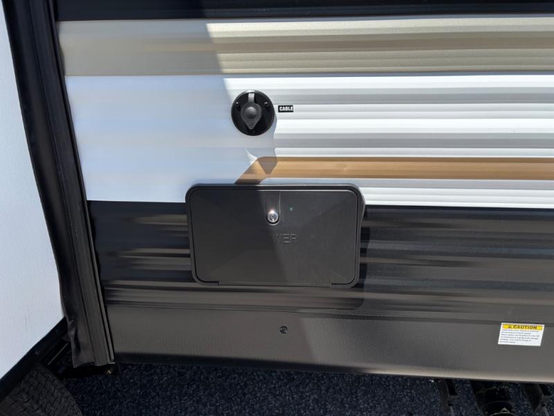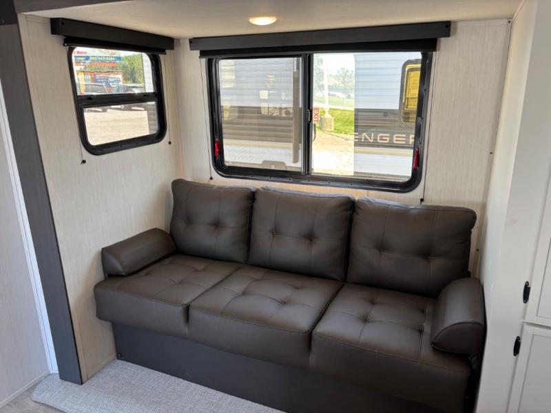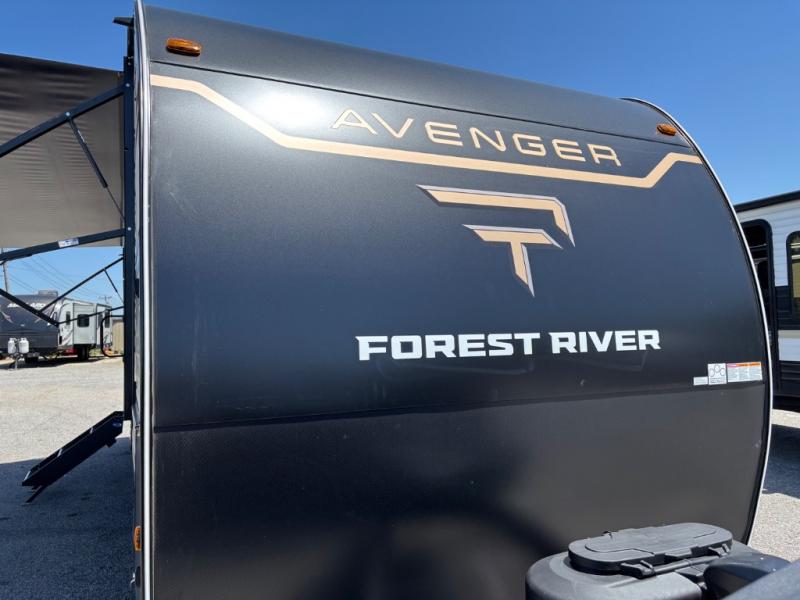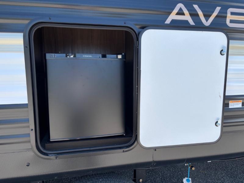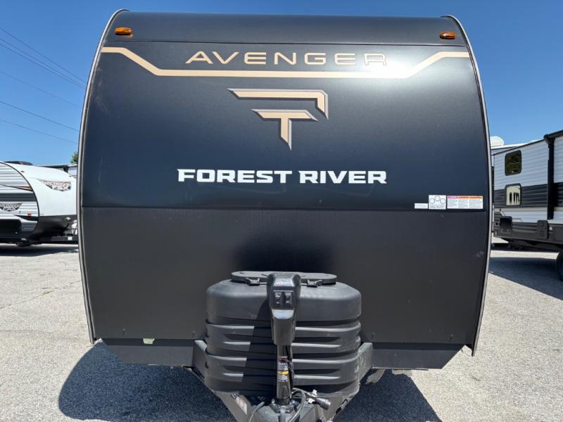 With any Avenger travel trailer by Prime Time, the exterior includes an aerodynamic smooth front metal, a diamond plate front rock guard for protection on the road, and four stabilizer jacks to keep your unit secure. There is a fully walkable roof plus an enclosed and heated underbelly that will help extend your camping season. The interior offers a 15,000 BTU air conditioner for the perfect climate inside, in-floor ducted heat, a systems monitor panel, and a Winegard 360+ antenna with Wi-Fi prep that will give you the option to stay connected as you camp. Each model also includes seamless Carefree Congoleum flooring, kitchen backsplash, shower pans in all models, and pleated nightshades throughout to name a few interior comforts!