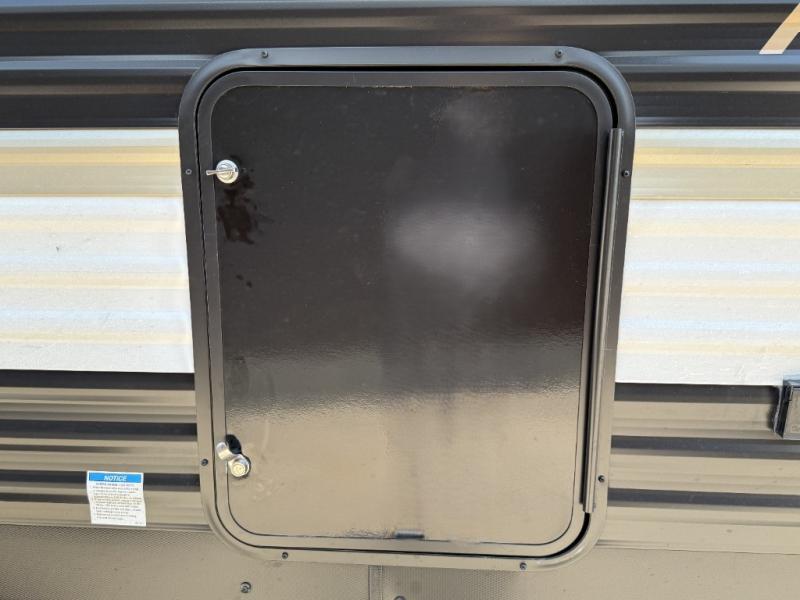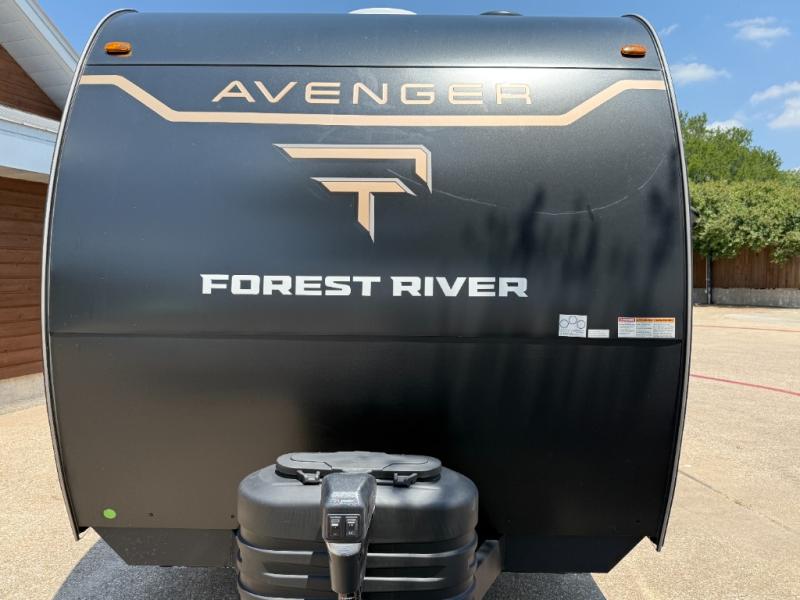 With any Avenger travel trailer by Prime Time, the exterior includes an aerodynamic smooth front metal, a diamond plate front rock guard for protection on the road, and four stabilizer jacks to keep your unit secure. There is a fully walkable roof plus an enclosed and heated underbelly that will help extend your camping season. The interior offers a 15,000 BTU air conditioner for the perfect climate inside, in-floor ducted heat, a systems monitor panel, and a Winegard 360+ antenna with Wi-Fi prep that will give you the option to stay connected as you camp. Each model also includes seamless Carefree Congoleum flooring, kitchen backsplash, shower pans in all models, and pleated nightshades throughout to name a few interior comforts!