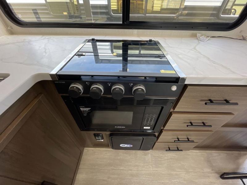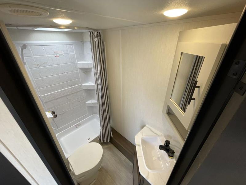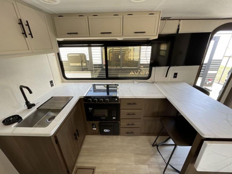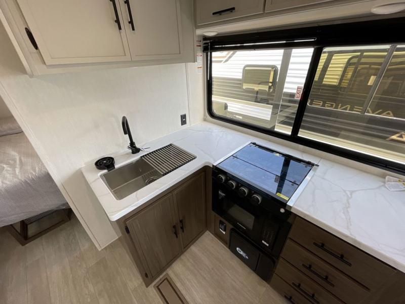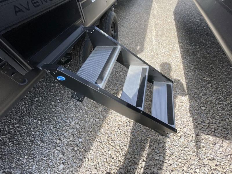 With any Avenger travel trailer by Prime Time RV, you will find innovation, a solid build, and comfort at every turn. Each model is built with Tuff Coat on the exterior metal, a fully enclosed underbelly, and a PVC roof membrane to help extend the life of your trailer. You will also find automotive name badging on the exterior, along with an exterior shower, front rail LED light strips, plus an XL padded entry grab handle to name a few conveniences. There are plenty of storage spaces inside, as well as Congoleum flooring and woven PVC marine grade slide out flooring, a designer shower surround, and seamless pressed countertops. You are sure to appreciate the onboard water filtration system, tankless water heater, plus 30K BTU furnace and 15K ducted A/C to help keep you comfortable.