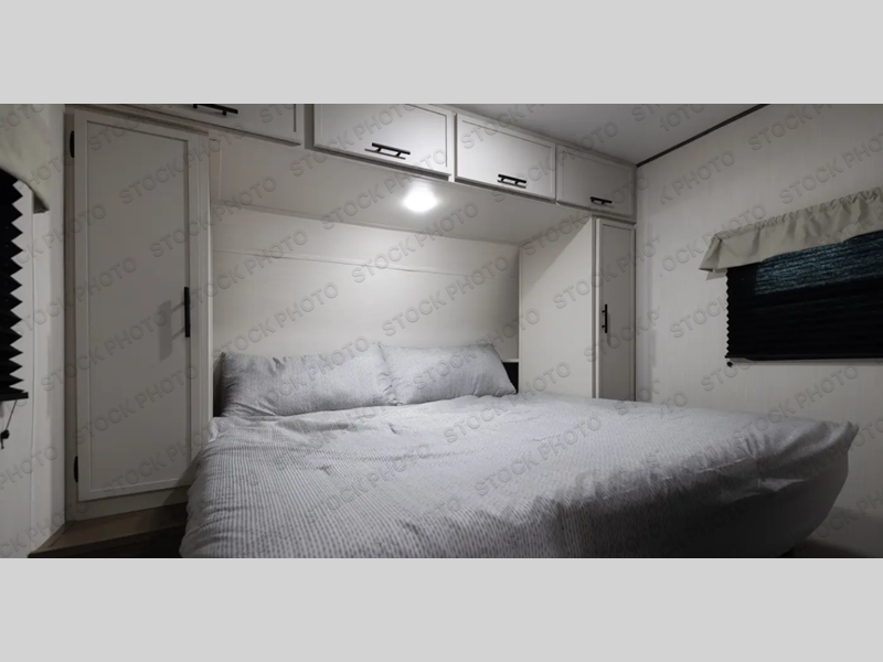 Head to your local state park in this spacious travel trailer! Once you arrive at the campground, you can grab a cold drink from the exterior refrigerator, then head inside to make lunch. An L-shaped counter with two stools provides a place to enjoy your morning coffee at, or you may find yourselves on the sofa within the slide out. The pantry and 12V refrigerator is also found here and can hold all your food for the week. You'll feel right at home in the front private bedroom that includes a camp king bed, dual wardrobes, and an overhead cabinet for even more storage. This model also includes washer and dryer prep if you choose to add those appliances!