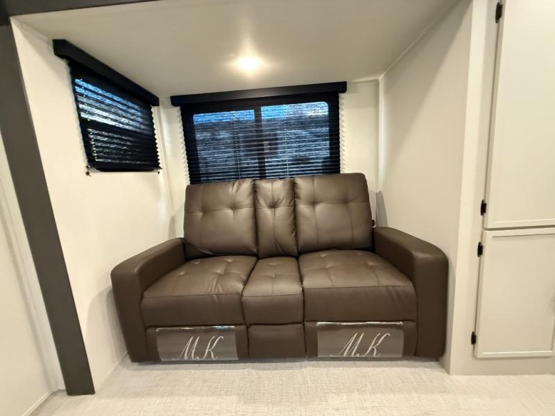 With any Avenger travel trailer by Prime Time RV, you will find innovation, a solid build, and comfort at every turn. Each model is built with Tuff Coat on the exterior metal, a fully enclosed underbelly, and a PVC roof membrane to help extend the life of your trailer. You will also find automotive name badging on the exterior, along with an exterior shower, front rail LED light strips, plus an XL padded entry grab handle to name a few conveniences. There are plenty of storage spaces inside, as well as Congoleum flooring and woven PVC marine grade slide out flooring, a designer shower surround, and seamless pressed countertops. You are sure to appreciate the onboard water filtration system, tankless water heater, plus 30K BTU furnace and 15K ducted A/C to help keep you comfortable.