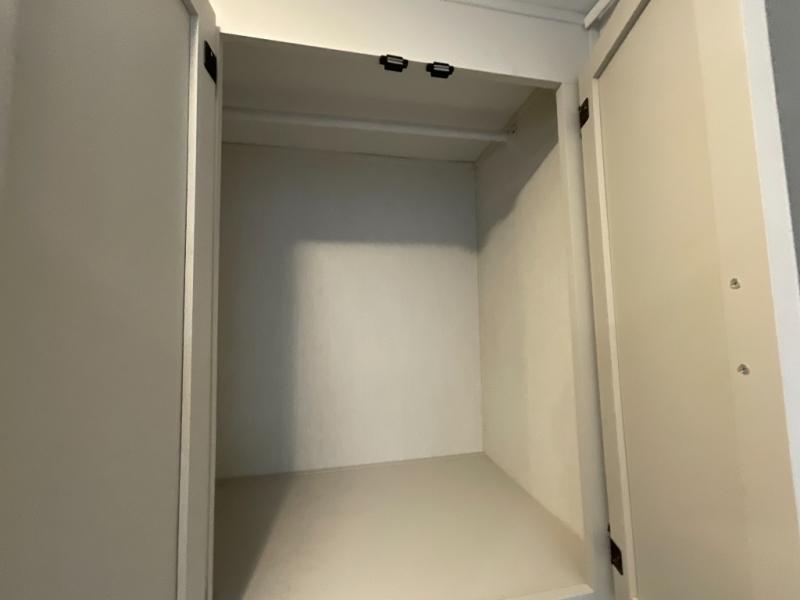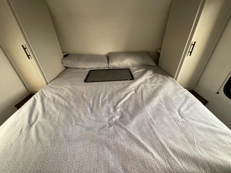 • Comfortable front bedroom with queen bed and practical storage solutions.