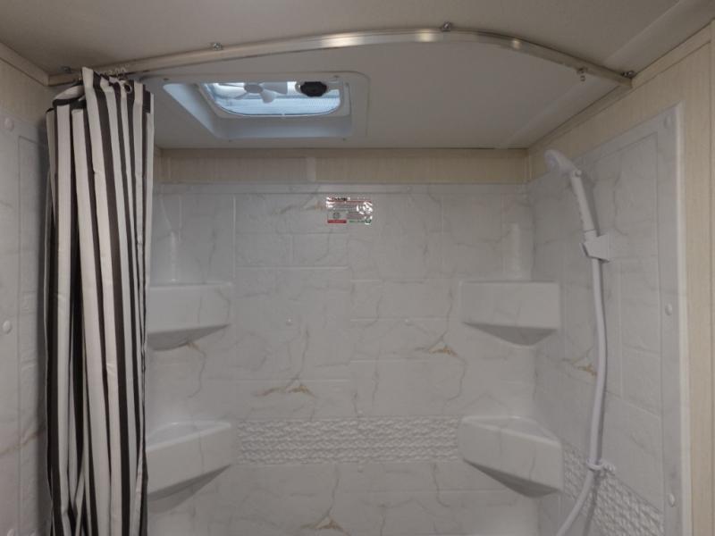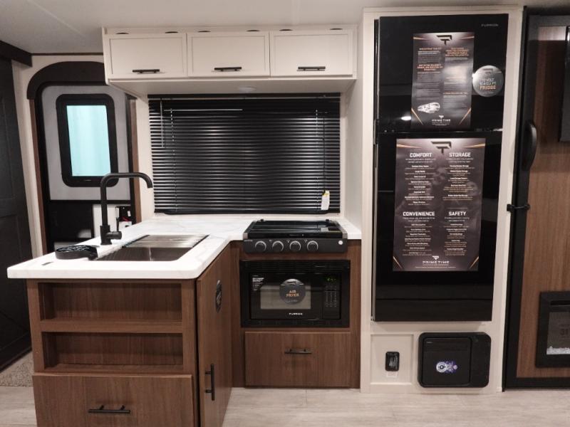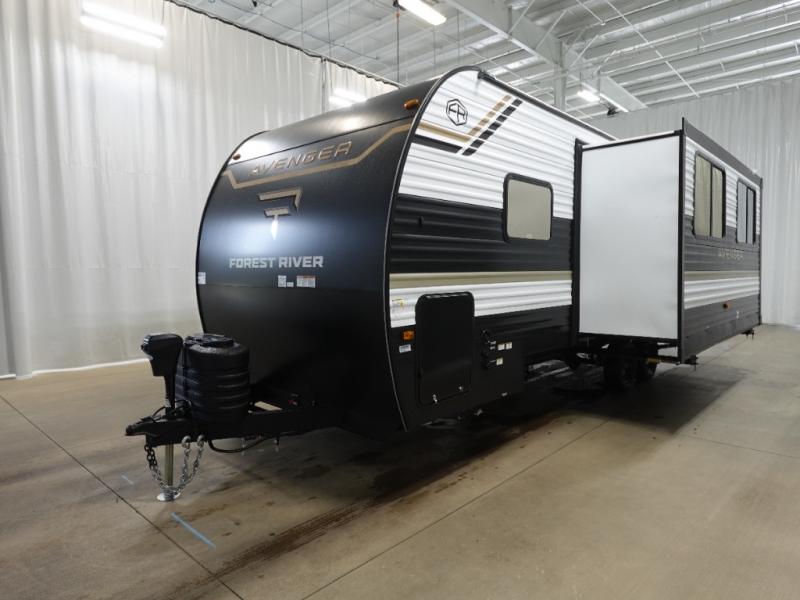 With any Avenger travel trailer by Prime Time RV, you will find innovation, a solid build, and comfort at every turn. Each model is built with Tuff Coat on the exterior metal, a fully enclosed underbelly, and a PVC roof membrane to help extend the life of your trailer. You will also find automotive name badging on the exterior, along with an exterior shower, front rail LED light strips, plus an XL padded entry grab handle to name a few conveniences. There are plenty of storage spaces inside, as well as Congoleum flooring and woven PVC marine grade slide out flooring, a designer shower surround, and seamless pressed countertops. You are sure to appreciate the onboard water filtration system, tankless water heater, plus 30K BTU furnace and 15K ducted A/C to help keep you comfortable.