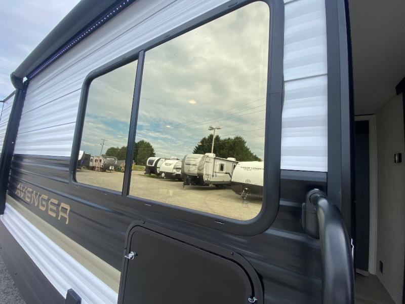 With any Avenger travel trailer by Prime Time RV, you will find innovation, a solid build, and comfort at every turn. Each model is built with Tuff Coat on the exterior metal, a fully enclosed underbelly, and a PVC roof membrane to help extend the life of your trailer. You will also find automotive name badging on the exterior, along with an exterior shower, front rail LED light strips, plus an XL padded entry grab handle to name a few conveniences. There are plenty of storage spaces inside, as well as Congoleum flooring and woven PVC marine grade slide out flooring, a designer shower surround, and seamless pressed countertops. You are sure to appreciate the onboard water filtration system, tankless water heater, plus 30K BTU furnace and 15K ducted A/C to help keep you comfortable.