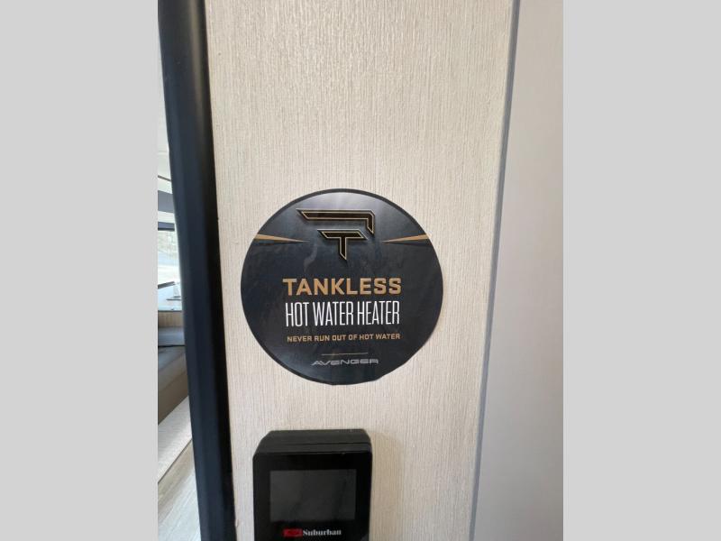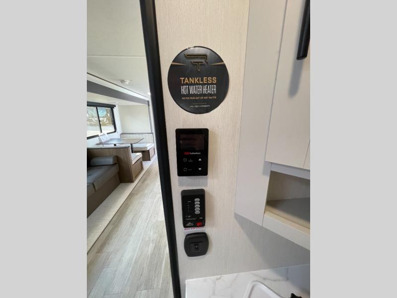 With any Avenger travel trailer by Prime Time RV, you will find innovation, a solid build, and comfort at every turn. Each model is built with Tuff Coat on the exterior metal, a fully enclosed underbelly, and a PVC roof membrane to help extend the life of your trailer. You will also find automotive name badging on the exterior, along with an exterior shower, front rail LED light strips, plus an XL padded entry grab handle to name a few conveniences. There are plenty of storage spaces inside, as well as Congoleum flooring and woven PVC marine grade slide out flooring, a designer shower surround, and seamless pressed countertops. You are sure to appreciate the onboard water filtration system, tankless water heater, plus 30K BTU furnace and 15K ducted A/C to help keep you comfortable.