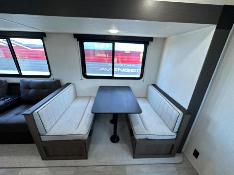 With any Avenger travel trailer by Prime Time RV, you will find innovation, a solid build, and comfort at every turn. Each model is built with Tuff Coat on the exterior metal, a fully enclosed underbelly, and a PVC roof membrane to help extend the life of your trailer. You will also find automotive name badging on the exterior, along with an exterior shower, front rail LED light strips, plus an XL padded entry grab handle to name a few conveniences. There are plenty of storage spaces inside, as well as Congoleum flooring and woven PVC marine grade slide out flooring, a designer shower surround, and seamless pressed countertops. You are sure to appreciate the onboard water filtration system, tankless water heater, plus 30K BTU furnace and 15K ducted A/C to help keep you comfortable.