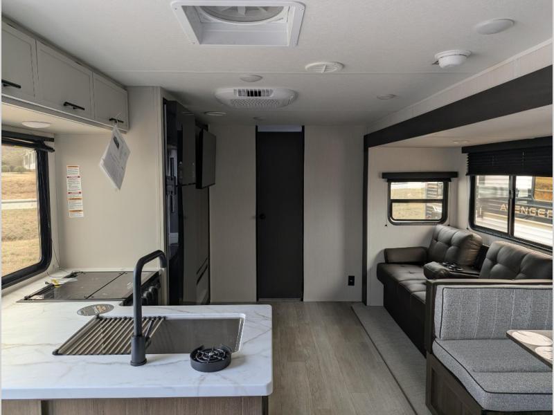 With any Avenger travel trailer by Prime Time RV, you will find innovation, a solid build, and comfort at every turn. Each model is built with Tuff Coat on the exterior metal, a fully enclosed underbelly, and a PVC roof membrane to help extend the life of your trailer. You will also find automotive name badging on the exterior, along with an exterior shower, front rail LED light strips, plus an XL padded entry grab handle to name a few conveniences. There are plenty of storage spaces inside, as well as Congoleum flooring and woven PVC marine grade slide out flooring, a designer shower surround, and seamless pressed countertops. You are sure to appreciate the onboard water filtration system, tankless water heater, plus 30K BTU furnace and 15K ducted A/C to help keep you comfortable.