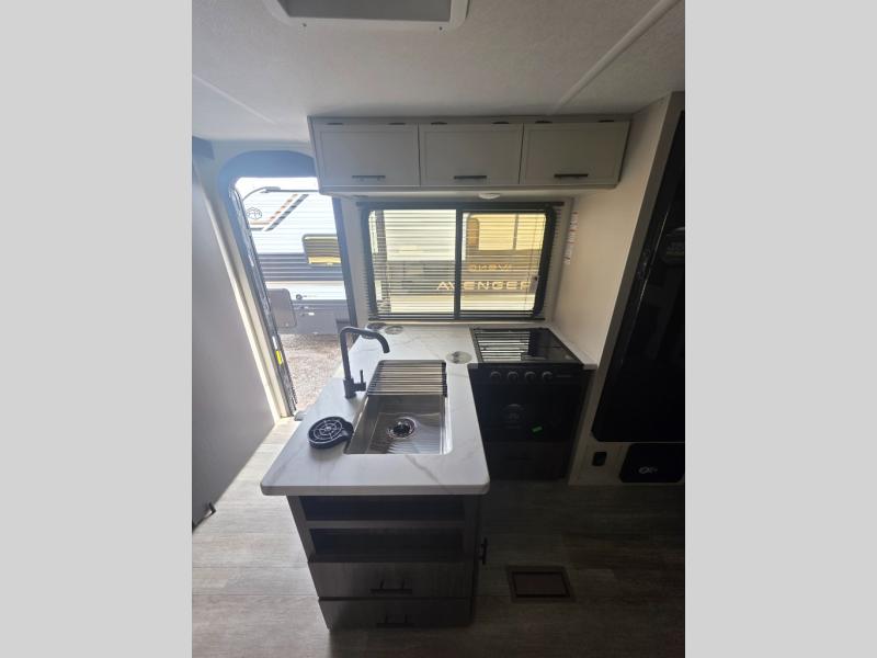 With any Avenger travel trailer by Prime Time RV, you will find innovation, a solid build, and comfort at every turn. Each model is built with Tuff Coat on the exterior metal, a fully enclosed underbelly, and a PVC roof membrane to help extend the life of your trailer. You will also find automotive name badging on the exterior, along with an exterior shower, front rail LED light strips, plus an XL padded entry grab handle to name a few conveniences. There are plenty of storage spaces inside, as well as Congoleum flooring and woven PVC marine grade slide out flooring, a designer shower surround, and seamless pressed countertops. You are sure to appreciate the onboard water filtration system, tankless water heater, plus 30K BTU furnace and 15K ducted A/C to help keep you comfortable.