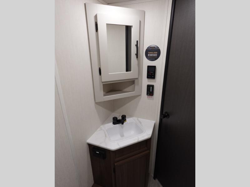 With any Avenger travel trailer by Prime Time RV, you will find innovation, a solid build, and comfort at every turn. Each model is built with Tuff Coat on the exterior metal, a fully enclosed underbelly, and a PVC roof membrane to help extend the life of your trailer. You will also find automotive name badging on the exterior, along with an exterior shower, front rail LED light strips, plus an XL padded entry grab handle to name a few conveniences. There are plenty of storage spaces inside, as well as Congoleum flooring and woven PVC marine grade slide out flooring, a designer shower surround, and seamless pressed countertops. You are sure to appreciate the onboard water filtration system, tankless water heater, plus 30K BTU furnace and 15K ducted A/C to help keep you comfortable.