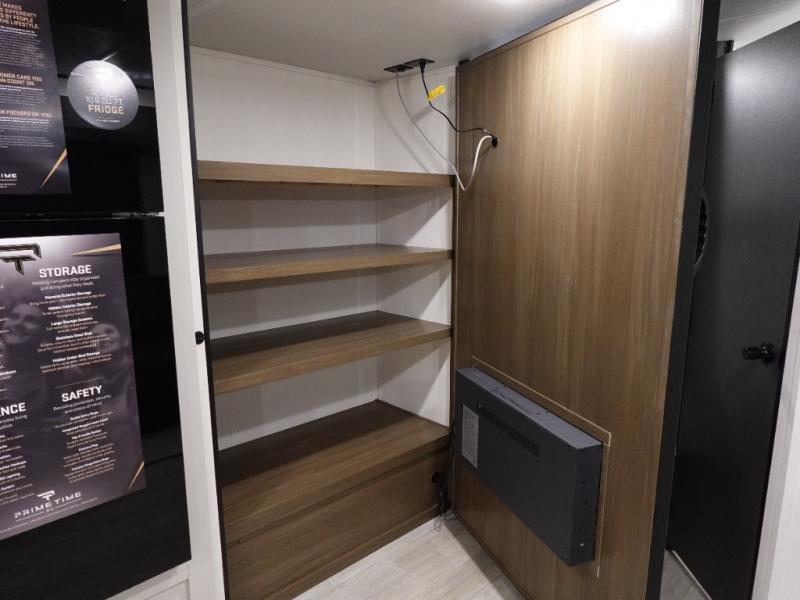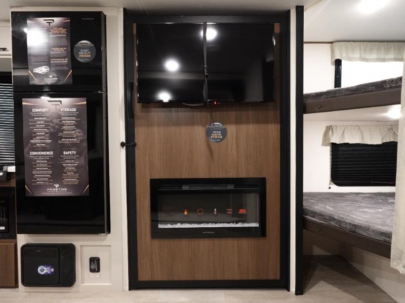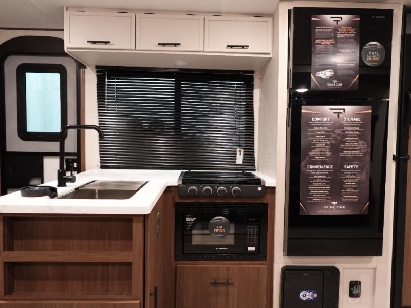 With any Avenger travel trailer by Prime Time RV, you will find innovation, a solid build, and comfort at every turn. Each model is built with Tuff Coat on the exterior metal, a fully enclosed underbelly, and a PVC roof membrane to help extend the life of your trailer. You will also find automotive name badging on the exterior, along with an exterior shower, front rail LED light strips, plus an XL padded entry grab handle to name a few conveniences. There are plenty of storage spaces inside, as well as Congoleum flooring and woven PVC marine grade slide out flooring, a designer shower surround, and seamless pressed countertops. You are sure to appreciate the onboard water filtration system, tankless water heater, plus 30K BTU furnace and 15K ducted A/C to help keep you comfortable.