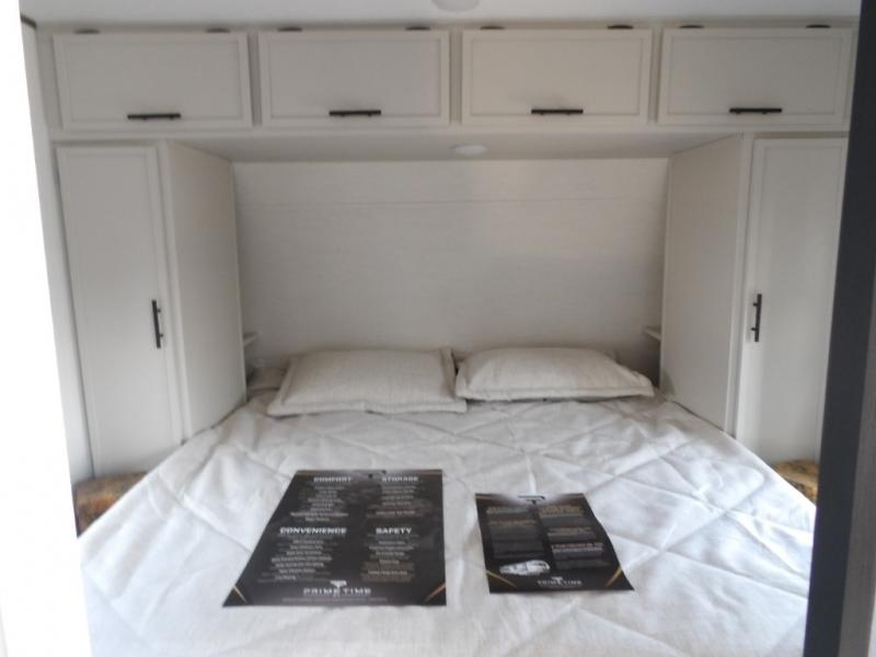 With any Avenger travel trailer by Prime Time RV, you will find innovation, a solid build, and comfort at every turn. Each model is built with Tuff Coat on the exterior metal, a fully enclosed underbelly, and a PVC roof membrane to help extend the life of your trailer. You will also find automotive name badging on the exterior, along with an exterior shower, front rail LED light strips, plus an XL padded entry grab handle to name a few conveniences. There are plenty of storage spaces inside, as well as Congoleum flooring and woven PVC marine grade slide out flooring, a designer shower surround, and seamless pressed countertops. You are sure to appreciate the onboard water filtration system, tankless water heater, plus 30K BTU furnace and 15K ducted A/C to help keep you comfortable.