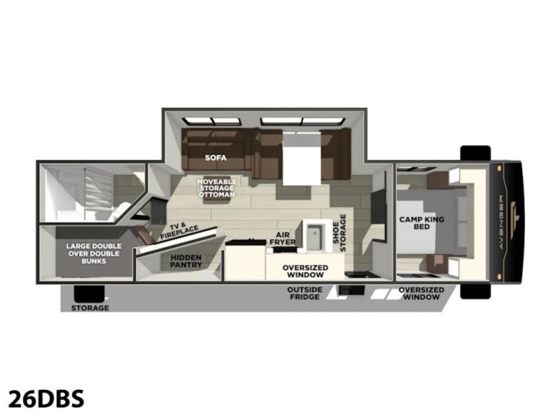 Prime Time Avenger travel trailer 26DBS highlights: