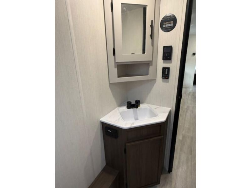 With any Avenger travel trailer by Prime Time RV, you will find innovation, a solid build, and comfort at every turn. Each model is built with Tuff Coat on the exterior metal, a fully enclosed underbelly, and a PVC roof membrane to help extend the life of your trailer. You will also find automotive name badging on the exterior, along with an exterior shower, front rail LED light strips, plus an XL padded entry grab handle to name a few conveniences. There are plenty of storage spaces inside, as well as Congoleum flooring and woven PVC marine grade slide out flooring, a designer shower surround, and seamless pressed countertops. You are sure to appreciate the onboard water filtration system, tankless water heater, plus 30K BTU furnace and 15K ducted A/C to help keep you comfortable.