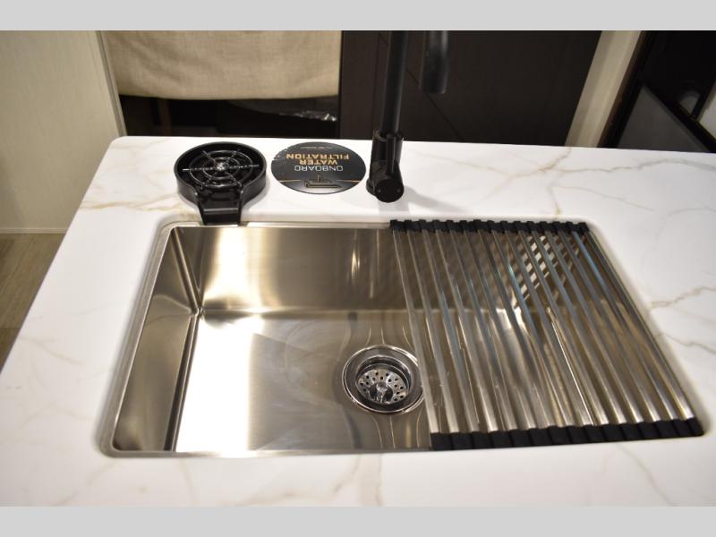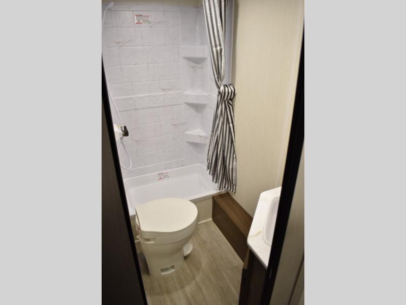 With any Avenger travel trailer by Prime Time RV, you will find innovation, a solid build, and comfort at every turn. Each model is built with Tuff Coat on the exterior metal, a fully enclosed underbelly, and a PVC roof membrane to help extend the life of your trailer. You will also find automotive name badging on the exterior, along with an exterior shower, front rail LED light strips, plus an XL padded entry grab handle to name a few conveniences. There are plenty of storage spaces inside, as well as Congoleum flooring and woven PVC marine grade slide out flooring, a designer shower surround, and seamless pressed countertops. You are sure to appreciate the onboard water filtration system, tankless water heater, plus 30K BTU furnace and 15K ducted A/C to help keep you comfortable.