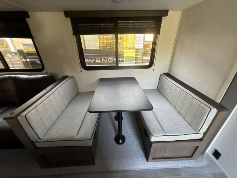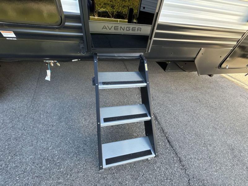 With any Avenger travel trailer by Prime Time RV, you will find innovation, a solid build, and comfort at every turn. Each model is built with Tuff Coat on the exterior metal, a fully enclosed underbelly, and a PVC roof membrane to help extend the life of your trailer. You will also find automotive name badging on the exterior, along with an exterior shower, front rail LED light strips, plus an XL padded entry grab handle to name a few conveniences. There are plenty of storage spaces inside, as well as Congoleum flooring and woven PVC marine grade slide out flooring, a designer shower surround, and seamless pressed countertops. You are sure to appreciate the onboard water filtration system, tankless water heater, plus 30K BTU furnace and 15K ducted A/C to help keep you comfortable.