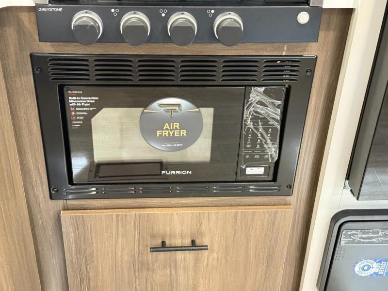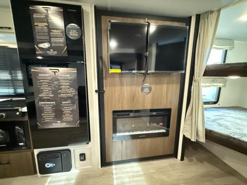 With any Avenger travel trailer by Prime Time RV, you will find innovation, a solid build, and comfort at every turn. Each model is built with Tuff Coat on the exterior metal, a fully enclosed underbelly, and a PVC roof membrane to help extend the life of your trailer. You will also find automotive name badging on the exterior, along with an exterior shower, front rail LED light strips, plus an XL padded entry grab handle to name a few conveniences. There are plenty of storage spaces inside, as well as Congoleum flooring and woven PVC marine grade slide out flooring, a designer shower surround, and seamless pressed countertops. You are sure to appreciate the onboard water filtration system, tankless water heater, plus 30K BTU furnace and 15K ducted A/C to help keep you comfortable.