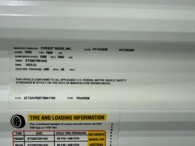 New 2026 Prime Time RV Avenger 26DBS Travel Trailer