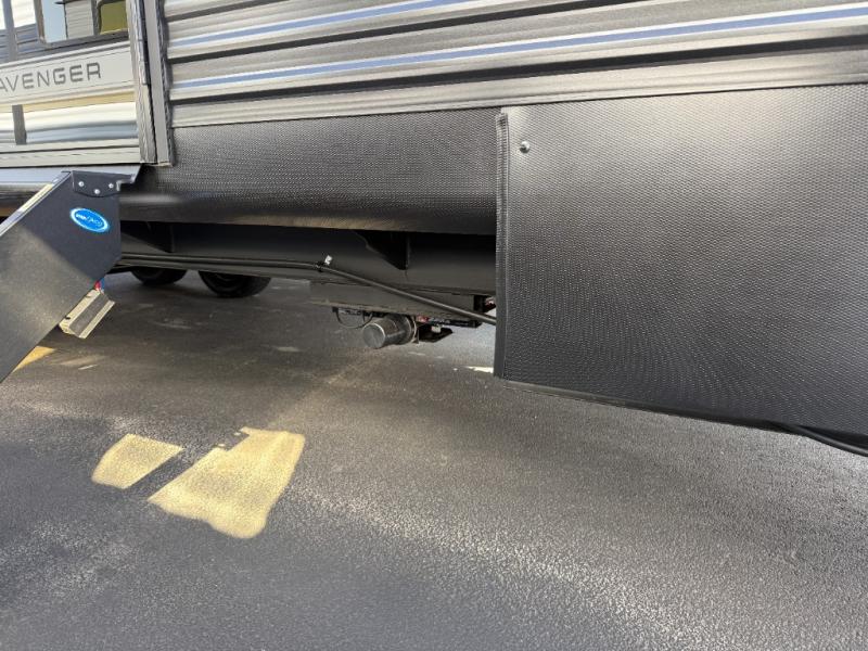 With any Avenger travel trailer by Prime Time RV, you will find innovation, a solid build, and comfort at every turn. Each model is built with Tuff Coat on the exterior metal, a fully enclosed underbelly, and a PVC roof membrane to help extend the life of your trailer. You will also find automotive name badging on the exterior, along with an exterior shower, front rail LED light strips, plus an XL padded entry grab handle to name a few conveniences. There are plenty of storage spaces inside, as well as Congoleum flooring and woven PVC marine grade slide out flooring, a designer shower surround, and seamless pressed countertops. You are sure to appreciate the onboard water filtration system, tankless water heater, plus 30K BTU furnace and 15K ducted A/C to help keep you comfortable.