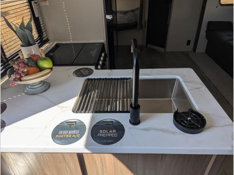 With any Avenger travel trailer by Prime Time RV, you will find innovation, a solid build, and comfort at every turn. Each model is built with Tuff Coat on the exterior metal, a fully enclosed underbelly, and a PVC roof membrane to help extend the life of your trailer. You will also find automotive name badging on the exterior, along with an exterior shower, front rail LED light strips, plus an XL padded entry grab handle to name a few conveniences. There are plenty of storage spaces inside, as well as Congoleum flooring and woven PVC marine grade slide out flooring, a designer shower surround, and seamless pressed countertops. You are sure to appreciate the onboard water filtration system, tankless water heater, plus 30K BTU furnace and 15K ducted A/C to help keep you comfortable.