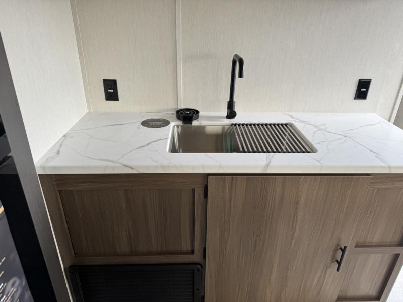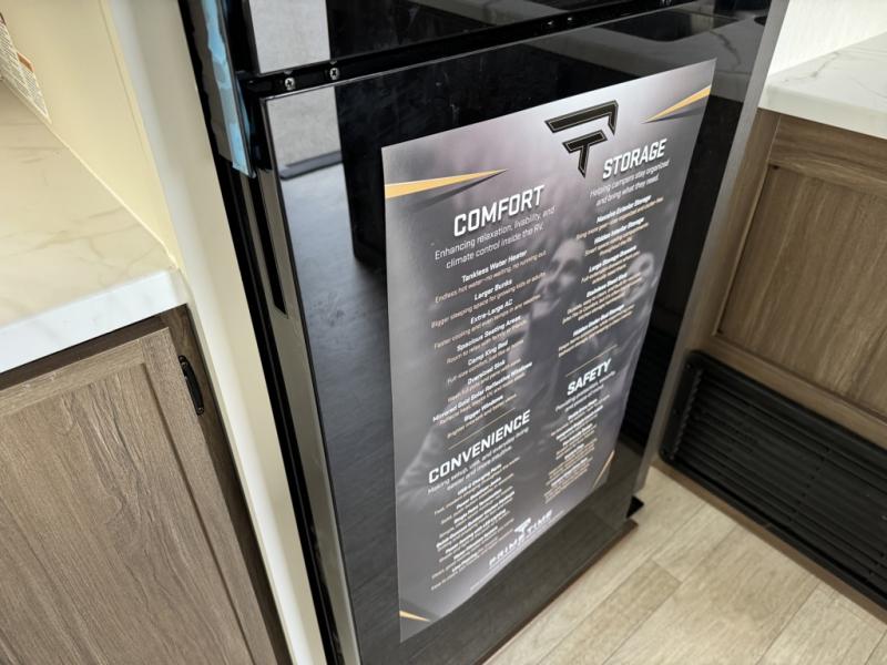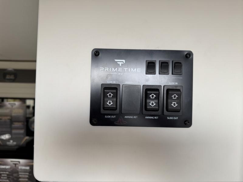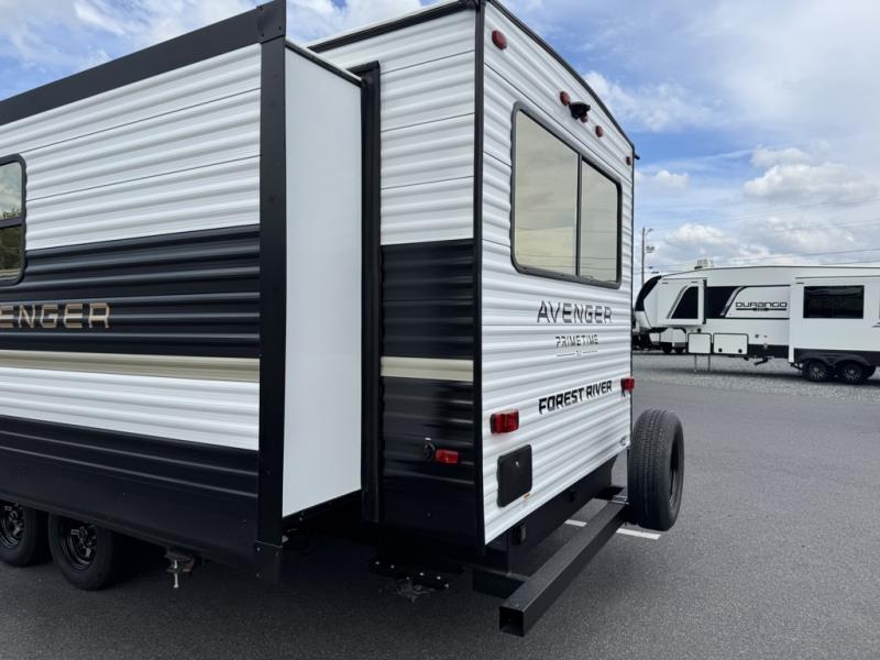 With any Avenger travel trailer by Prime Time RV, you will find innovation, a solid build, and comfort at every turn. Each model is built with Tuff Coat on the exterior metal, a fully enclosed underbelly, and a PVC roof membrane to help extend the life of your trailer. You will also find automotive name badging on the exterior, along with an exterior shower, front rail LED light strips, plus an XL padded entry grab handle to name a few conveniences. There are plenty of storage spaces inside, as well as Congoleum flooring and woven PVC marine grade slide out flooring, a designer shower surround, and seamless pressed countertops. You are sure to appreciate the onboard water filtration system, tankless water heater, plus 30K BTU furnace and 15K ducted A/C to help keep you comfortable.