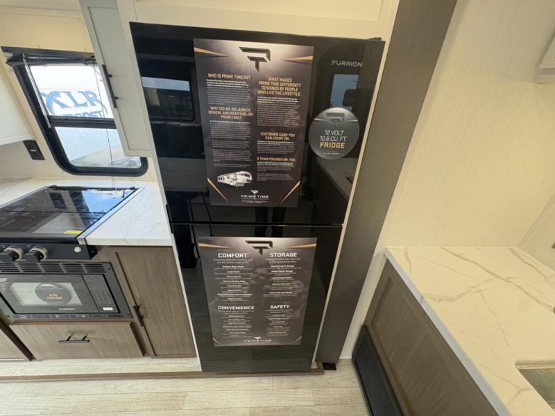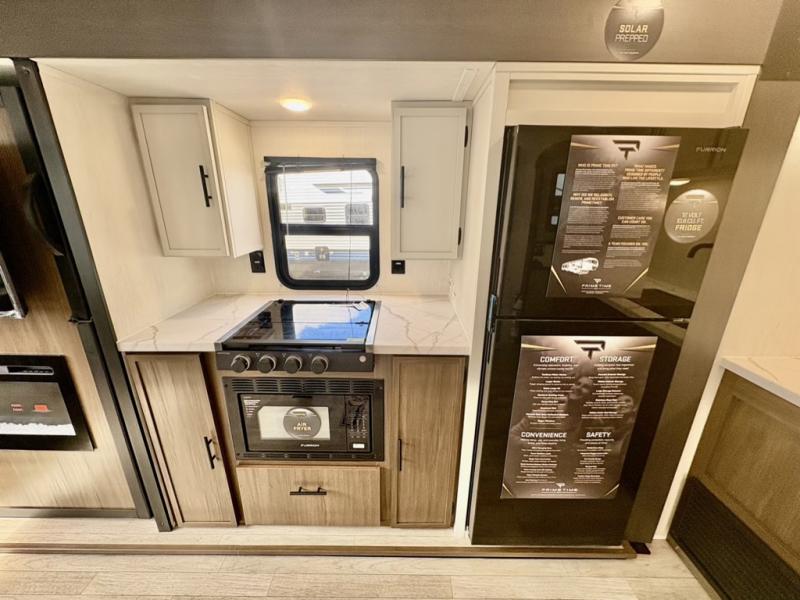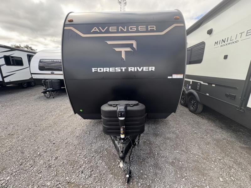 With any Avenger travel trailer by Prime Time RV, you will find innovation, a solid build, and comfort at every turn. Each model is built with Tuff Coat on the exterior metal, a fully enclosed underbelly, and a PVC roof membrane to help extend the life of your trailer. You will also find automotive name badging on the exterior, along with an exterior shower, front rail LED light strips, plus an XL padded entry grab handle to name a few conveniences. There are plenty of storage spaces inside, as well as Congoleum flooring and woven PVC marine grade slide out flooring, a designer shower surround, and seamless pressed countertops. You are sure to appreciate the onboard water filtration system, tankless water heater, plus 30K BTU furnace and 15K ducted A/C to help keep you comfortable.