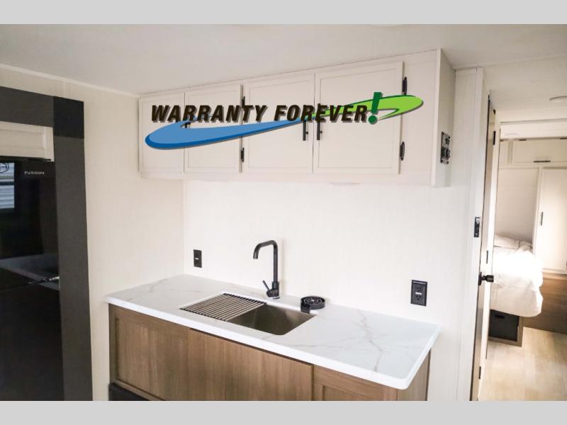 With any Avenger travel trailer by Prime Time RV, you will find innovation, a solid build, and comfort at every turn. Each model is built with Tuff Coat on the exterior metal, a fully enclosed underbelly, and a PVC roof membrane to help extend the life of your trailer. You will also find automotive name badging on the exterior, along with an exterior shower, front rail LED light strips, plus an XL padded entry grab handle to name a few conveniences. There are plenty of storage spaces inside, as well as Congoleum flooring and woven PVC marine grade slide out flooring, a designer shower surround, and seamless pressed countertops. You are sure to appreciate the onboard water filtration system, tankless water heater, plus 30K BTU furnace and 15K ducted A/C to help keep you comfortable.