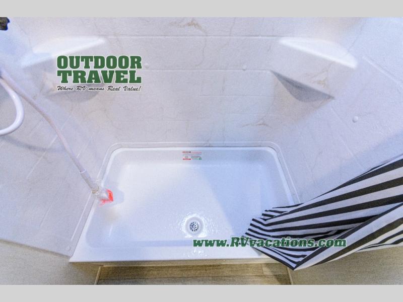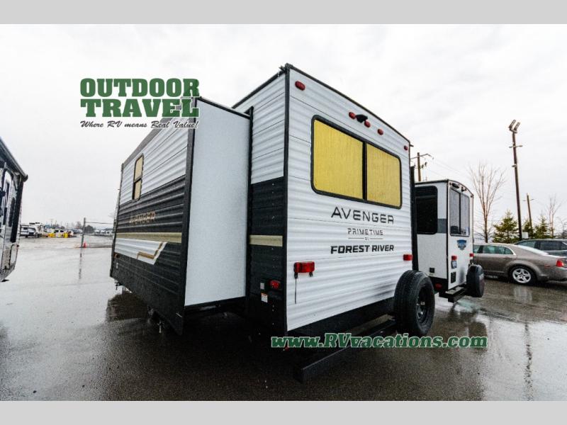 With any Avenger travel trailer by Prime Time RV, you will find innovation, a solid build, and comfort at every turn. Each model is built with Tuff Coat on the exterior metal, a fully enclosed underbelly, and a PVC roof membrane to help extend the life of your trailer. You will also find automotive name badging on the exterior, along with an exterior shower, front rail LED light strips, plus an XL padded entry grab handle to name a few conveniences. There are plenty of storage spaces inside, as well as Congoleum flooring and woven PVC marine grade slide out flooring, a designer shower surround, and seamless pressed countertops. You are sure to appreciate the onboard water filtration system, tankless water heater, plus 30K BTU furnace and 15K ducted A/C to help keep you comfortable.
