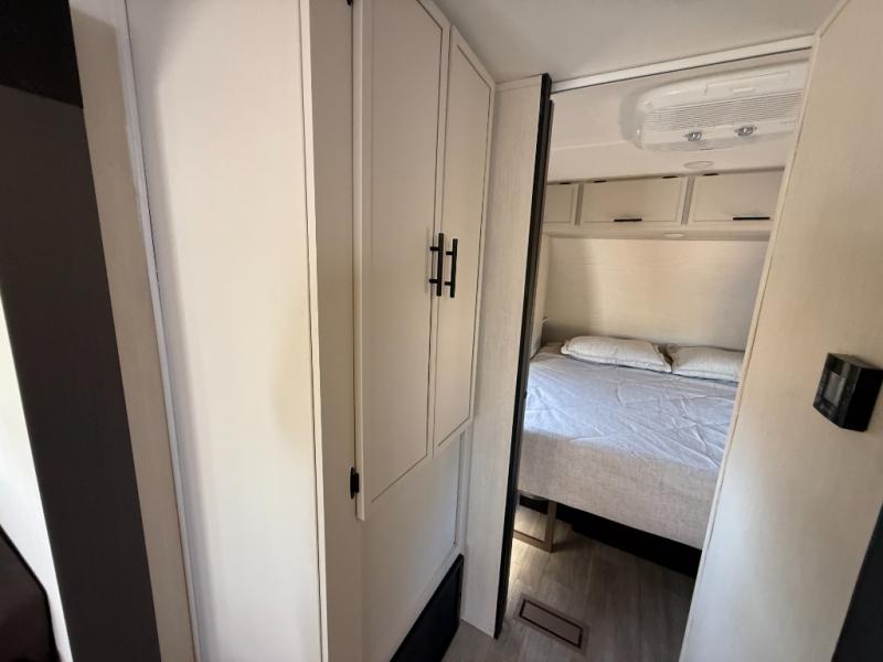 Front Private Bedroom with a walk-around Camp King Bed and upgraded storage