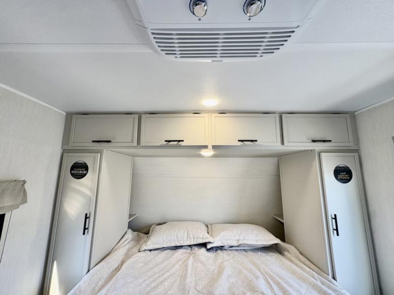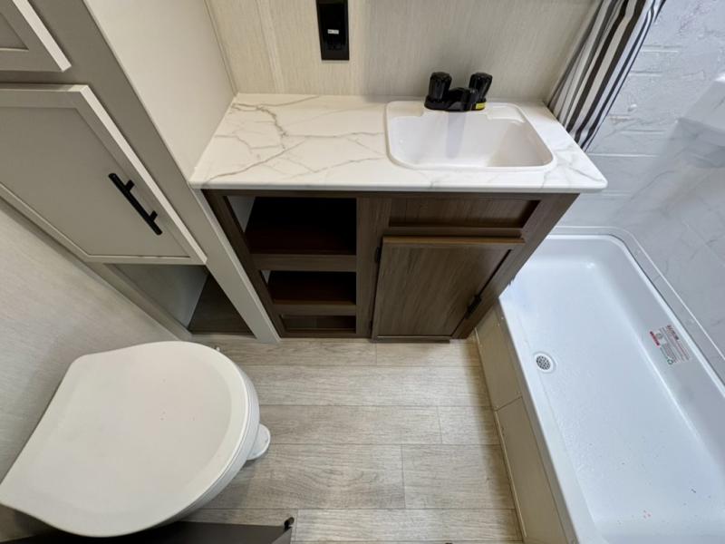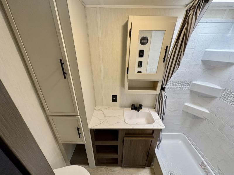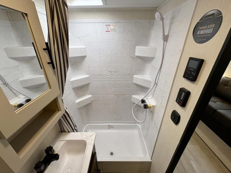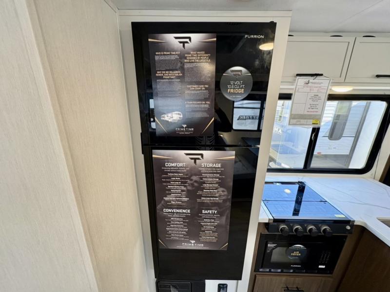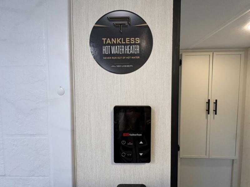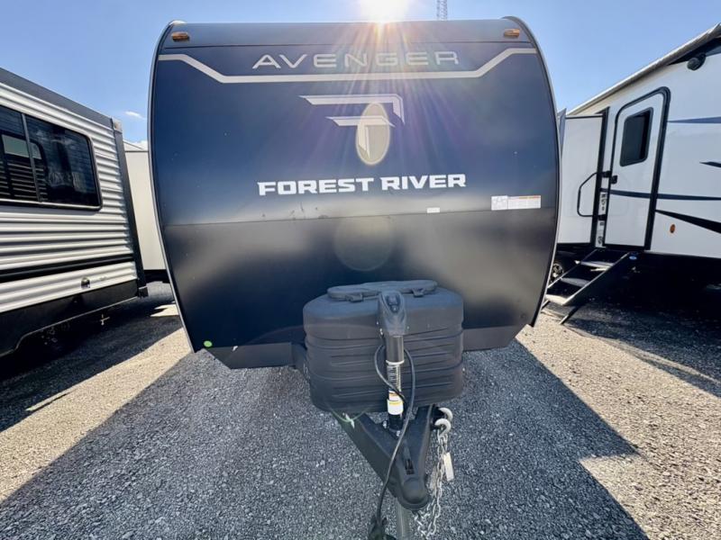 With any Avenger travel trailer by Prime Time RV, you will find innovation, a solid build, and comfort at every turn. Each model is built with Tuff Coat on the exterior metal, a fully enclosed underbelly, and a PVC roof membrane to help extend the life of your trailer. You will also find automotive name badging on the exterior, along with an exterior shower, front rail LED light strips, plus an XL padded entry grab handle to name a few conveniences. There are plenty of storage spaces inside, as well as Congoleum flooring and woven PVC marine grade slide out flooring, a designer shower surround, and seamless pressed countertops. You are sure to appreciate the onboard water filtration system, tankless water heater, plus 30K BTU furnace and 15K ducted A/C to help keep you comfortable.