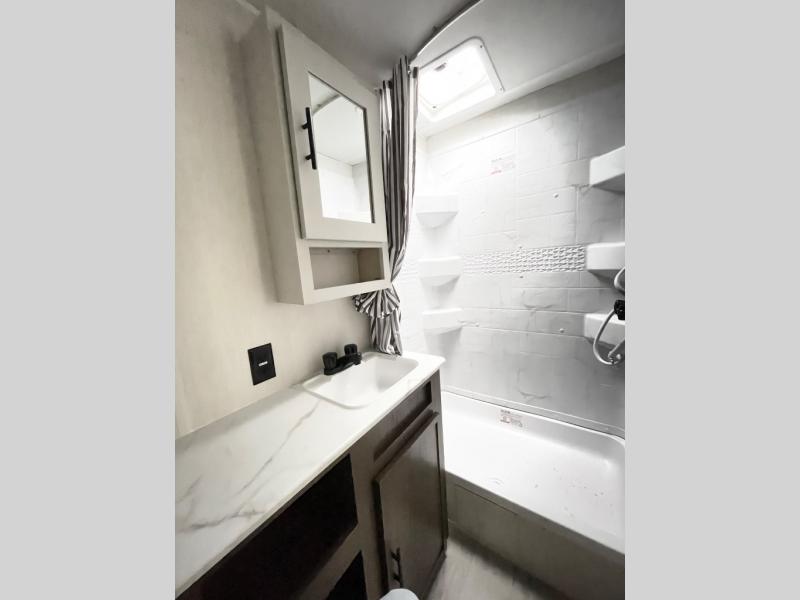 With any Avenger travel trailer by Prime Time RV, you will find innovation, a solid build, and comfort at every turn. Each model is built with Tuff Coat on the exterior metal, a fully enclosed underbelly, and a PVC roof membrane to help extend the life of your trailer. You will also find automotive name badging on the exterior, along with an exterior shower, front rail LED light strips, plus an XL padded entry grab handle to name a few conveniences. There are plenty of storage spaces inside, as well as Congoleum flooring and woven PVC marine grade slide out flooring, a designer shower surround, and seamless pressed countertops. You are sure to appreciate the onboard water filtration system, tankless water heater, plus 30K BTU furnace and 15K ducted A/C to help keep you comfortable.