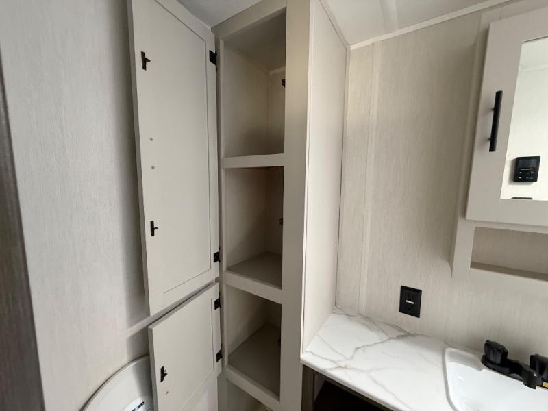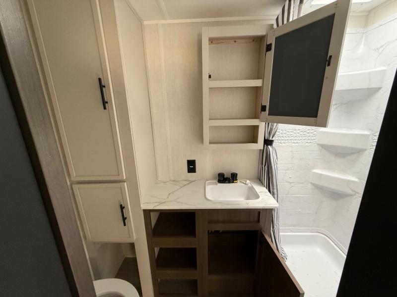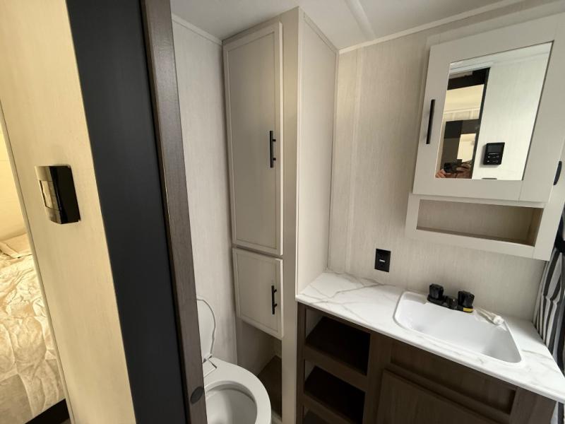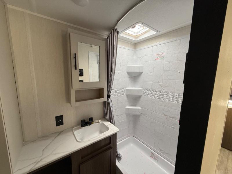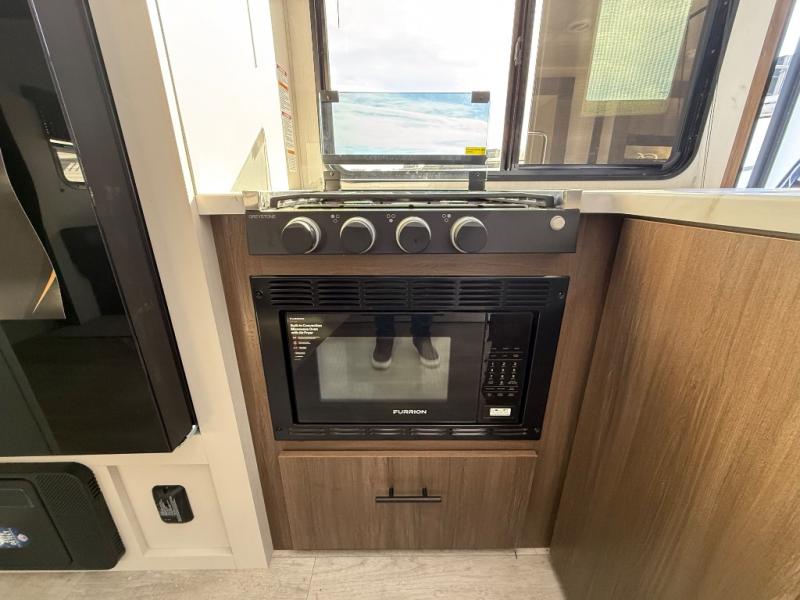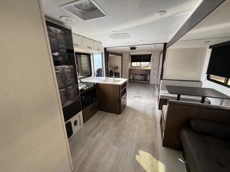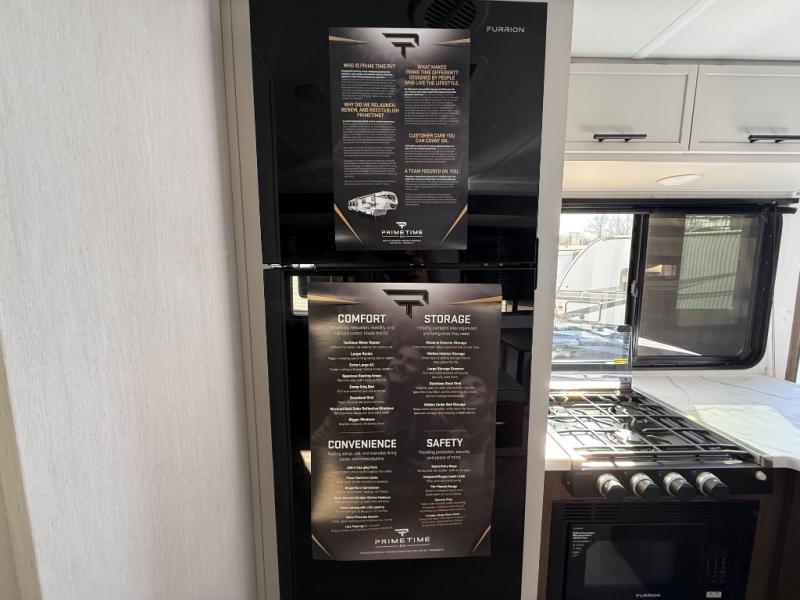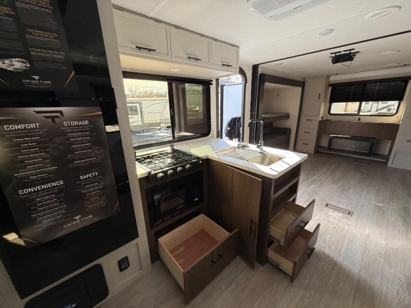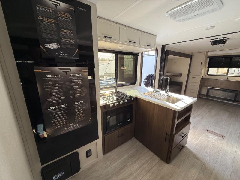 With any Avenger travel trailer by Prime Time RV, you will find innovation, a solid build, and comfort at every turn. Each model is built with Tuff Coat on the exterior metal, a fully enclosed underbelly, and a PVC roof membrane to help extend the life of your trailer. You will also find automotive name badging on the exterior, along with an exterior shower, front rail LED light strips, plus an XL padded entry grab handle to name a few conveniences. There are plenty of storage spaces inside, as well as Congoleum flooring and woven PVC marine grade slide out flooring, a designer shower surround, and seamless pressed countertops. You are sure to appreciate the onboard water filtration system, tankless water heater, plus 30K BTU furnace and 15K ducted A/C to help keep you comfortable.