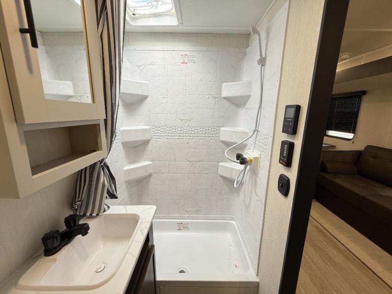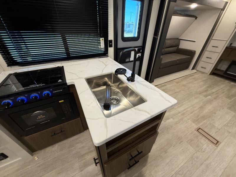 With any Avenger travel trailer by Prime Time RV, you will find innovation, a solid build, and comfort at every turn. Each model is built with Tuff Coat on the exterior metal, a fully enclosed underbelly, and a PVC roof membrane to help extend the life of your trailer. You will also find automotive name badging on the exterior, along with an exterior shower, front rail LED light strips, plus an XL padded entry grab handle to name a few conveniences. There are plenty of storage spaces inside, as well as Congoleum flooring and woven PVC marine grade slide out flooring, a designer shower surround, and seamless pressed countertops. You are sure to appreciate the onboard water filtration system, tankless water heater, plus 30K BTU furnace and 15K ducted A/C to help keep you comfortable.