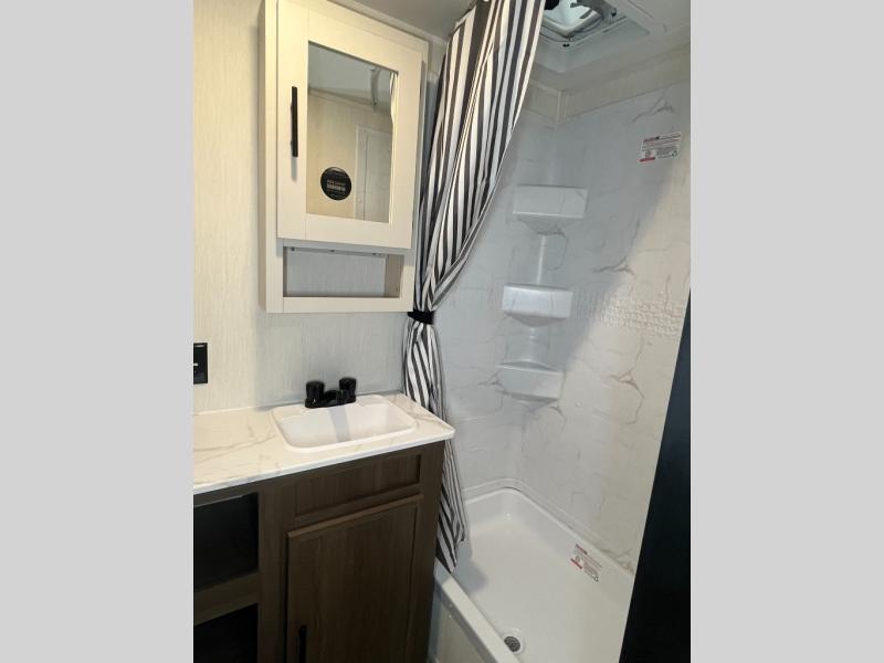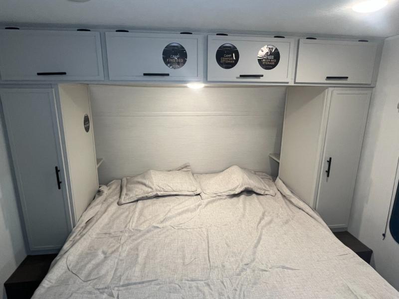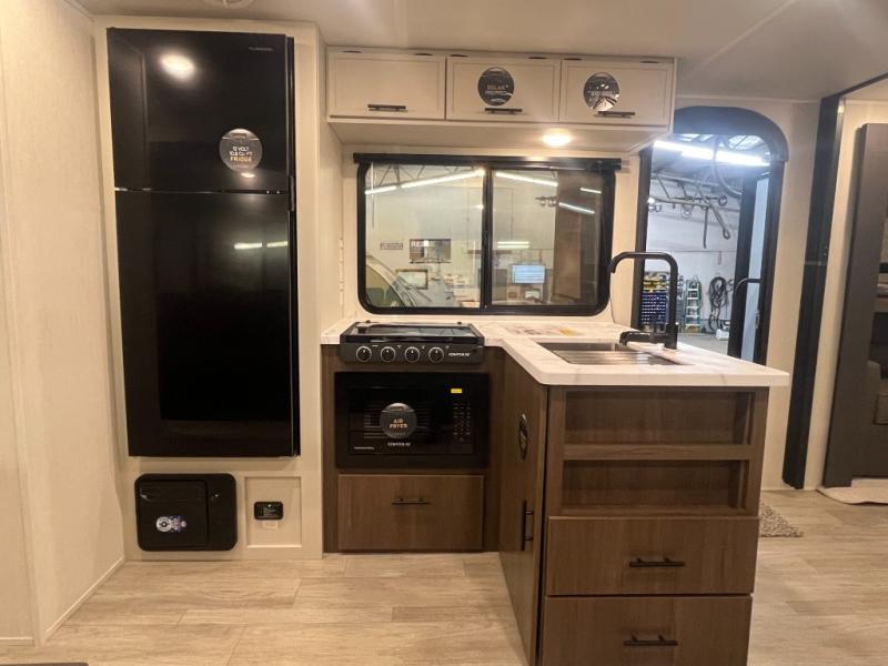 With any Avenger travel trailer by Prime Time RV, you will find innovation, a solid build, and comfort at every turn. Each model is built with Tuff Coat on the exterior metal, a fully enclosed underbelly, and a PVC roof membrane to help extend the life of your trailer. You will also find automotive name badging on the exterior, along with an exterior shower, front rail LED light strips, plus an XL padded entry grab handle to name a few conveniences. There are plenty of storage spaces inside, as well as Congoleum flooring and woven PVC marine grade slide out flooring, a designer shower surround, and seamless pressed countertops. You are sure to appreciate the onboard water filtration system, tankless water heater, plus 30K BTU furnace and 15K ducted A/C to help keep you comfortable.