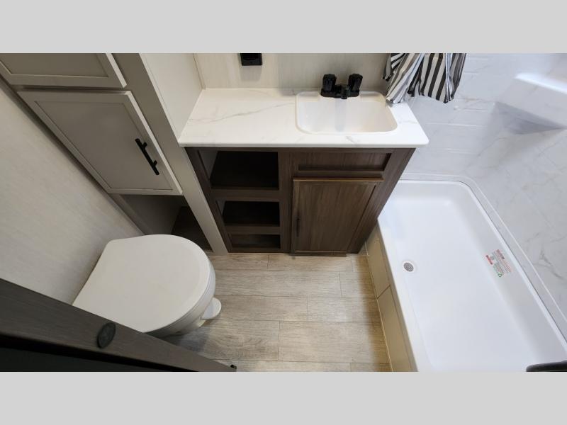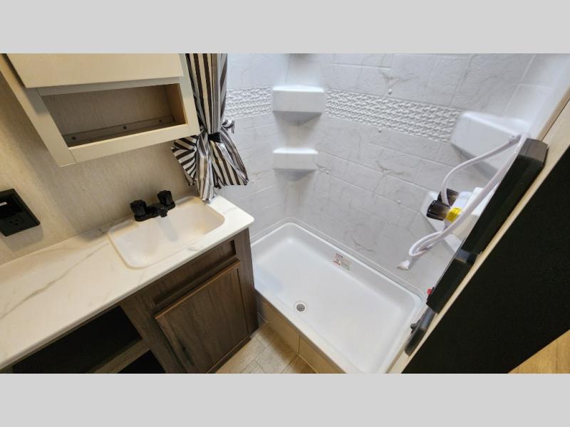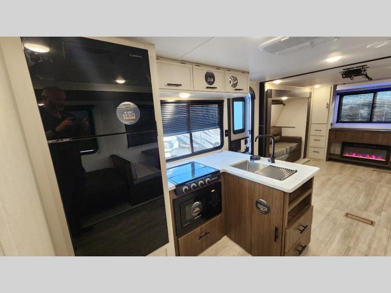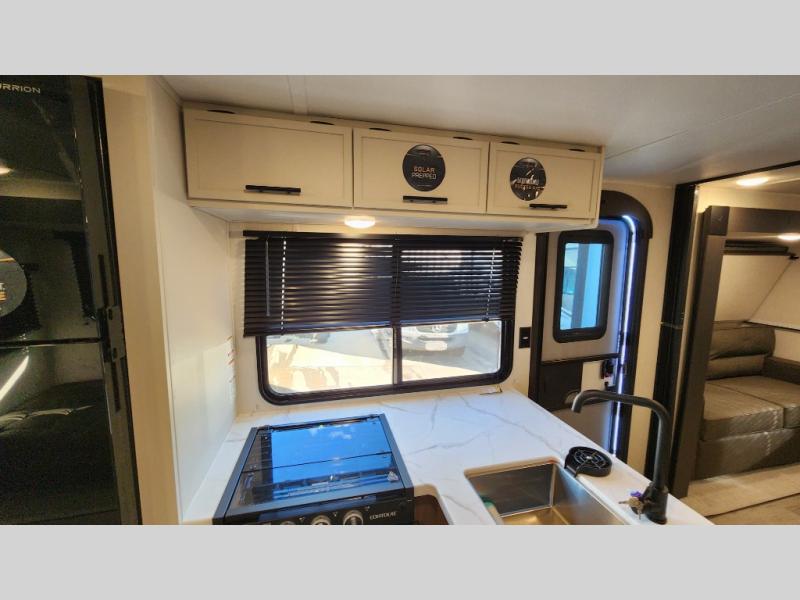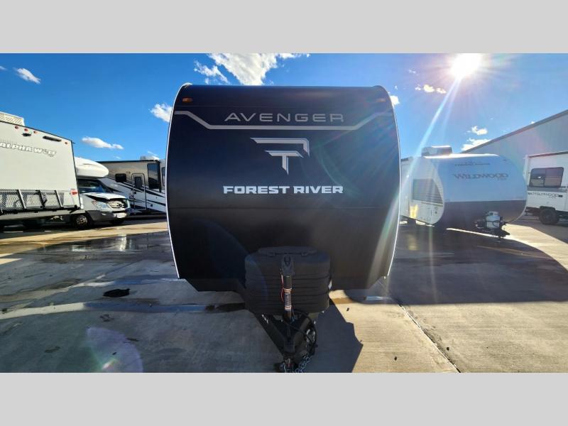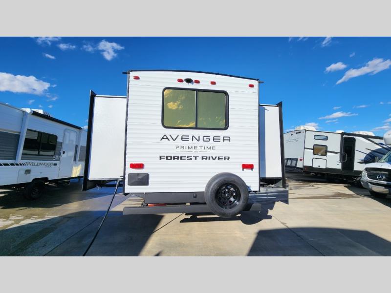 With any Avenger travel trailer by Prime Time RV, you will find innovation, a solid build, and comfort at every turn. Each model is built with Tuff Coat on the exterior metal, a fully enclosed underbelly, and a PVC roof membrane to help extend the life of your trailer. You will also find automotive name badging on the exterior, along with an exterior shower, front rail LED light strips, plus an XL padded entry grab handle to name a few conveniences. There are plenty of storage spaces inside, as well as Congoleum flooring and woven PVC marine grade slide out flooring, a designer shower surround, and seamless pressed countertops. You are sure to appreciate the onboard water filtration system, tankless water heater, plus 30K BTU furnace and 15K ducted A/C to help keep you comfortable.