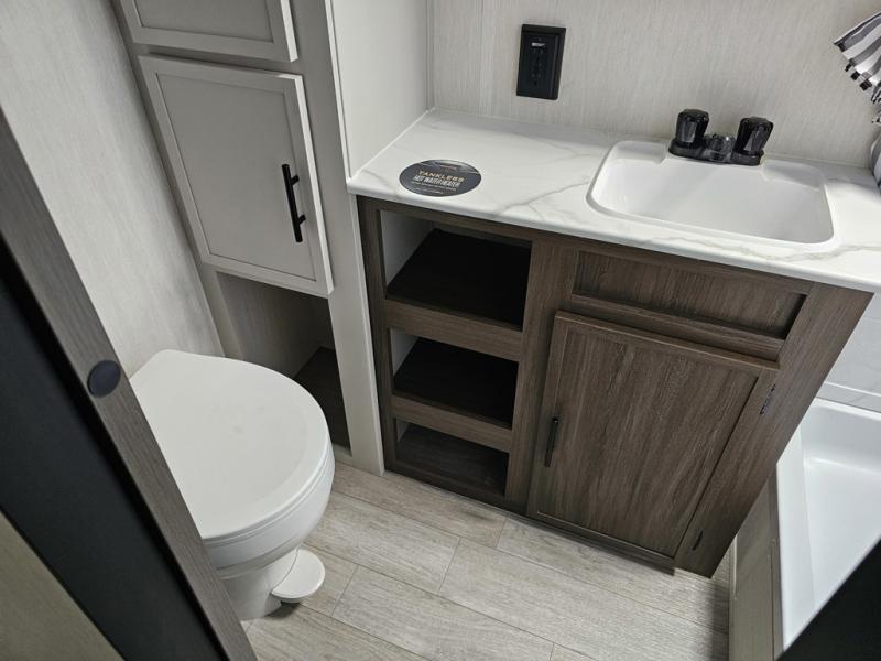 With any Avenger travel trailer by Prime Time RV, you will find innovation, a solid build, and comfort at every turn. Each model is built with Tuff Coat on the exterior metal, a fully enclosed underbelly, and a PVC roof membrane to help extend the life of your trailer. You will also find automotive name badging on the exterior, along with an exterior shower, front rail LED light strips, plus an XL padded entry grab handle to name a few conveniences. There are plenty of storage spaces inside, as well as Congoleum flooring and woven PVC marine grade slide out flooring, a designer shower surround, and seamless pressed countertops. You are sure to appreciate the onboard water filtration system, tankless water heater, plus 30K BTU furnace and 15K ducted A/C to help keep you comfortable.