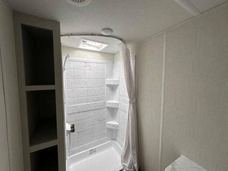 With any Avenger LE travel trailer by Prime Time RV you will enjoy at-home comforts while at the campground! Durable construction begins with an enclosed and heated underbelly, a one-piece roof membrane, and diamond plate front rock guard for added protection against debris during transport. There are also locking magnetic latches on the baggage doors, fully vented windows throughout, four stabilizer jacks, plus solar prep if you want the option to go off-grid. The interior will have you feeling right at home with residential extended ball bearing drawer glides, seamless Carefree Congoleum flooring, an XL single basin kitchen sink, and shower pans in all models that will make it easy to get in and out of the bath. Some of the convenient appliances and equipment you will appreciate are the 15,000 BTU A/C, 12V high-capacity water pump, Slim Profile range hood, and the Winegard 360+ antenna with Wi-Fi prep!