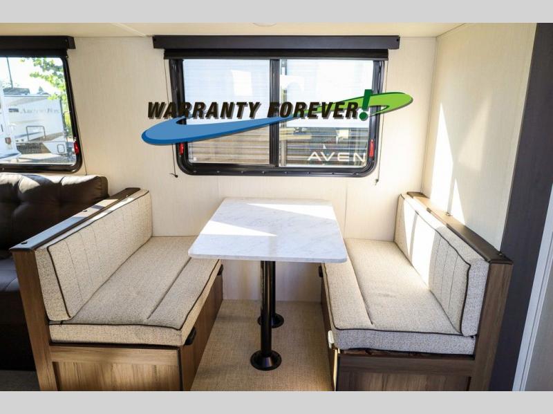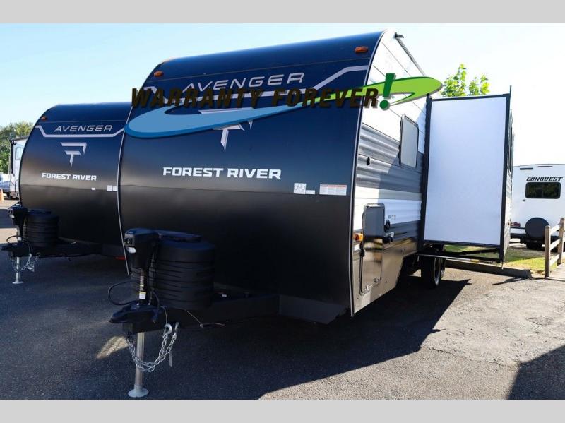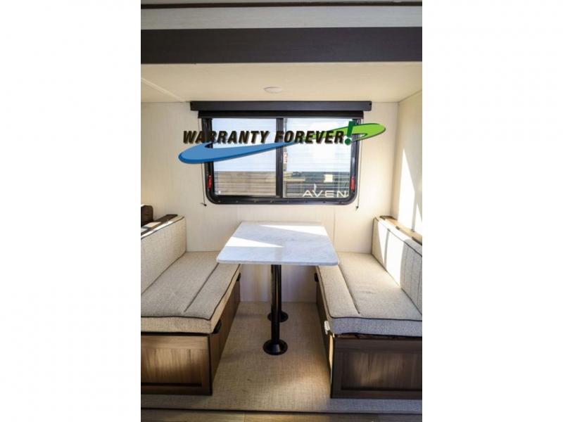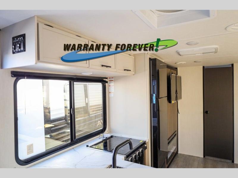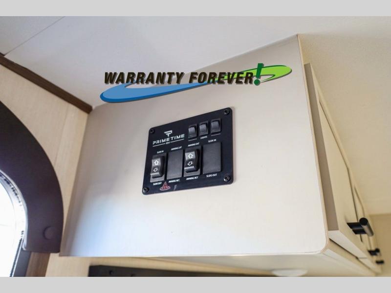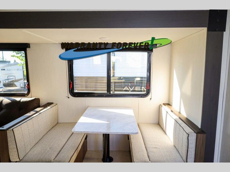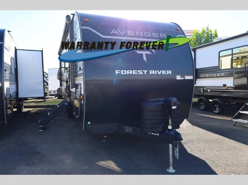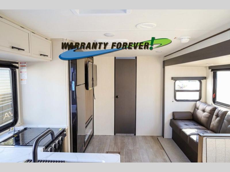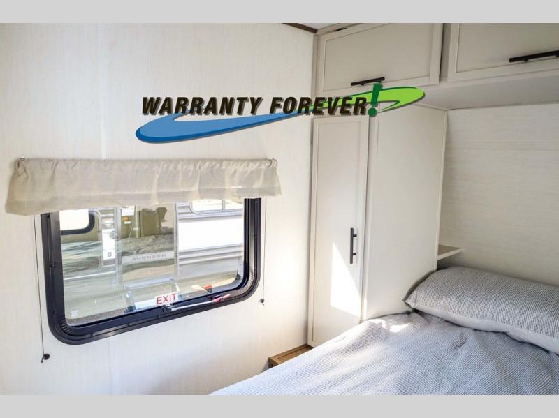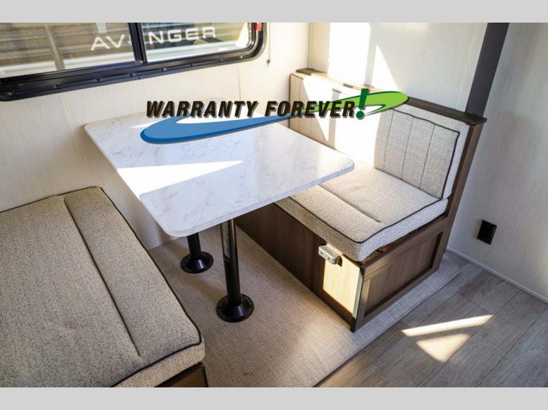 With any Avenger LE travel trailer by Prime Time RV you will enjoy at-home comforts while at the campground! Durable construction begins with an enclosed and heated underbelly, a one-piece roof membrane, and diamond plate front rock guard for added protection against debris during transport. There are also locking magnetic latches on the baggage doors, fully vented windows throughout, four stabilizer jacks, plus solar prep if you want the option to go off-grid. The interior will have you feeling right at home with residential extended ball bearing drawer glides, seamless Carefree Congoleum flooring, an XL single basin kitchen sink, and shower pans in all models that will make it easy to get in and out of the bath. Some of the convenient appliances and equipment you will appreciate are the 15,000 BTU A/C, 12V high-capacity water pump, Slim Profile range hood, and the Winegard 360+ antenna with Wi-Fi prep!