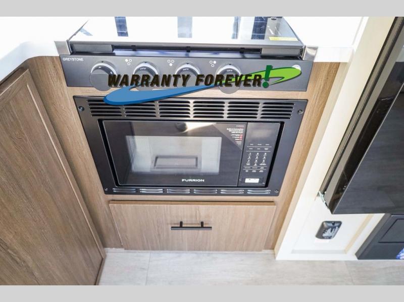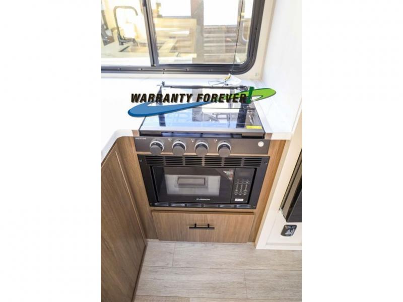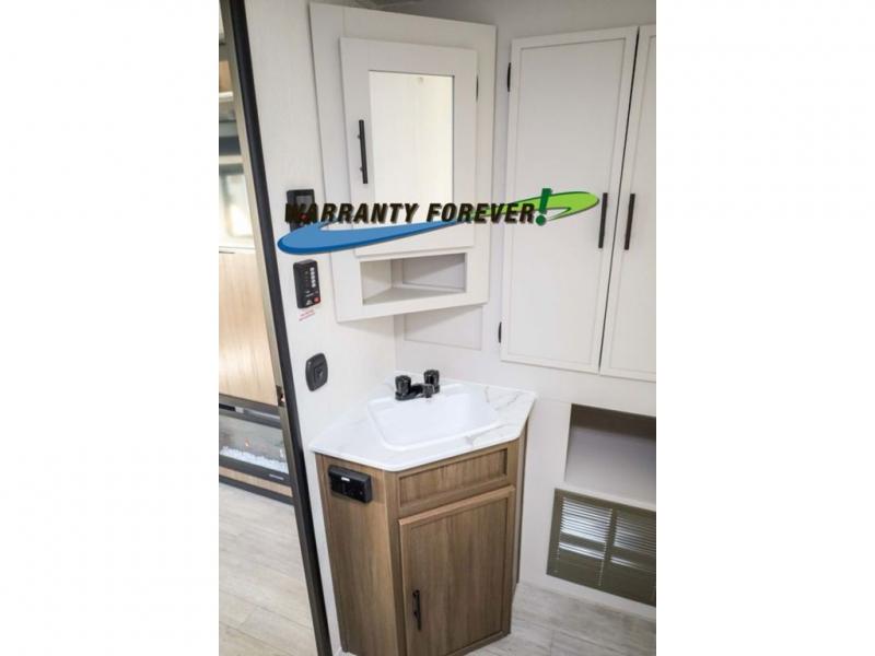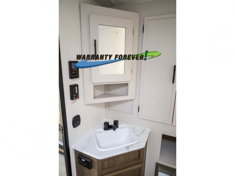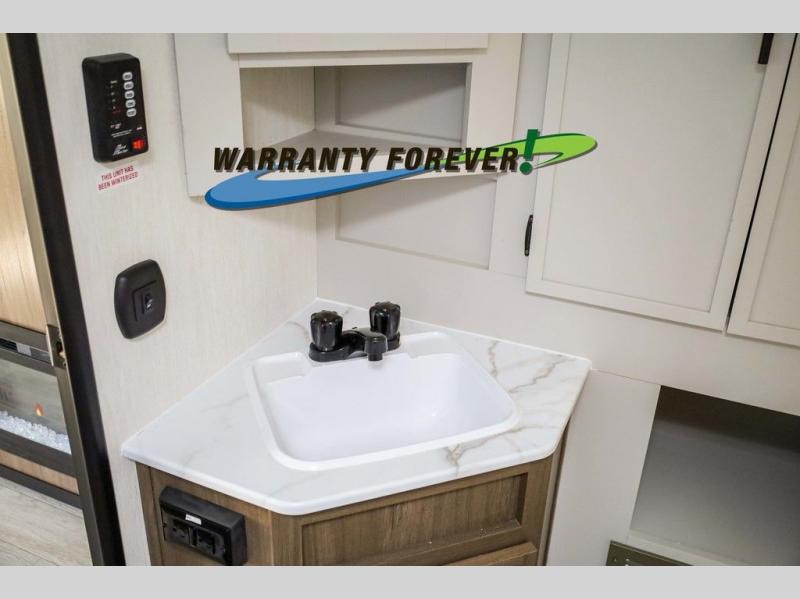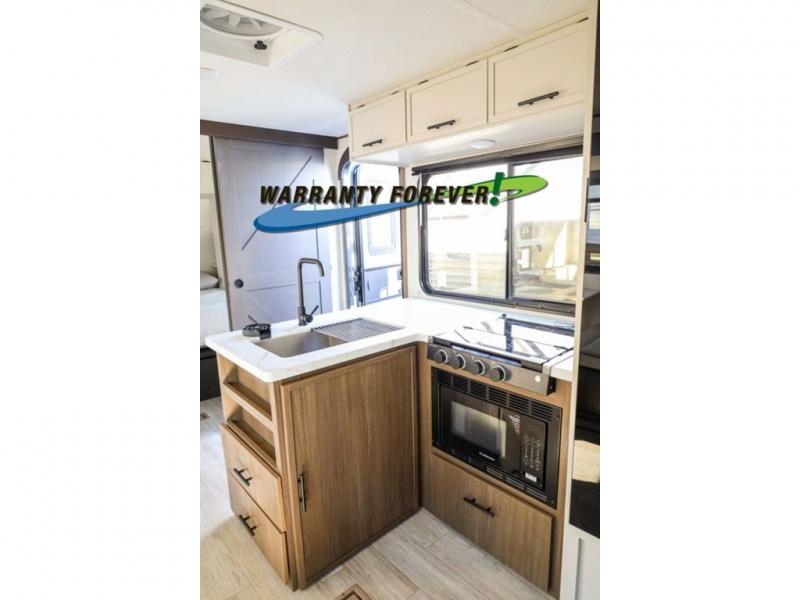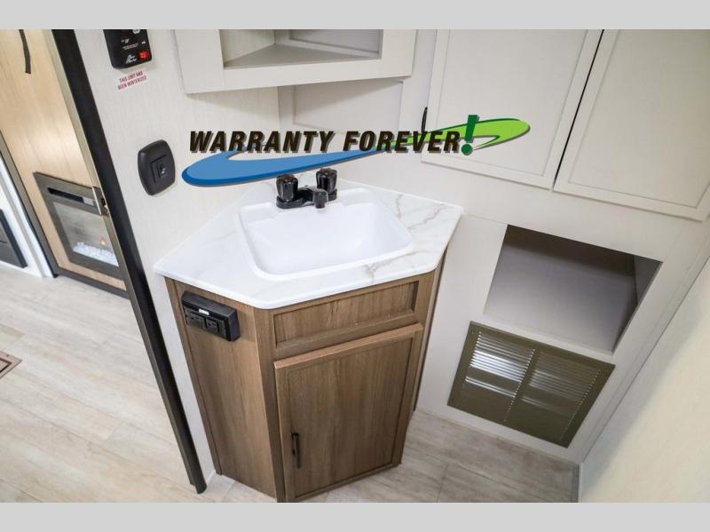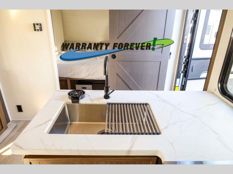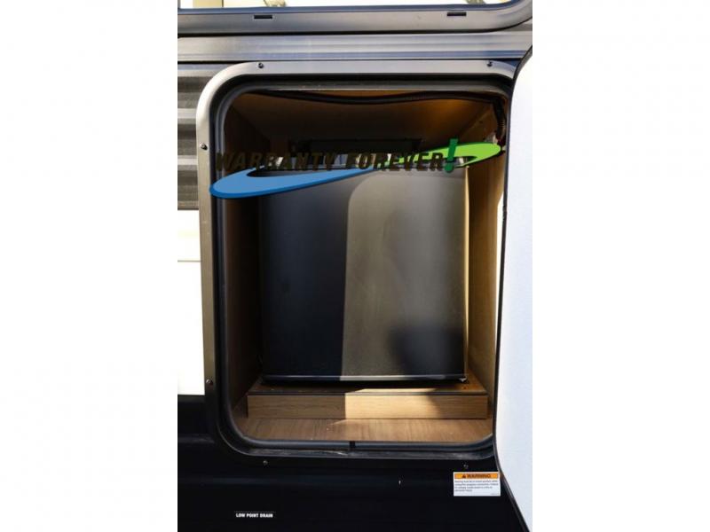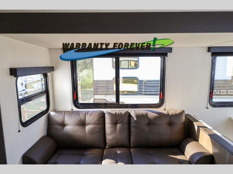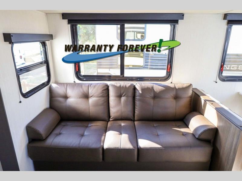 With any Avenger LE travel trailer by Prime Time RV you will enjoy at-home comforts while at the campground! Durable construction begins with an enclosed and heated underbelly, a one-piece roof membrane, and diamond plate front rock guard for added protection against debris during transport. There are also locking magnetic latches on the baggage doors, fully vented windows throughout, four stabilizer jacks, plus solar prep if you want the option to go off-grid. The interior will have you feeling right at home with residential extended ball bearing drawer glides, seamless Carefree Congoleum flooring, an XL single basin kitchen sink, and shower pans in all models that will make it easy to get in and out of the bath. Some of the convenient appliances and equipment you will appreciate are the 15,000 BTU A/C, 12V high-capacity water pump, Slim Profile range hood, and the Winegard 360+ antenna with Wi-Fi prep!