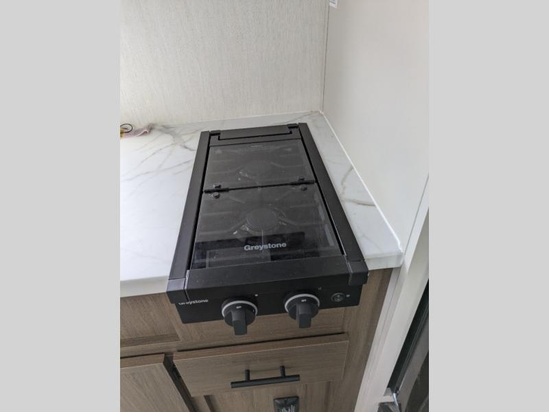 Two-Burner Cooktop & Kitchen Essentials – Cook up campground classics and your favorite meals with ease.