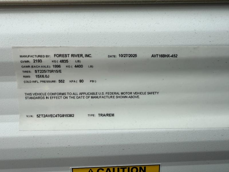 New 2026 Prime Time RV Avenger LT 16BHX Travel Trailer