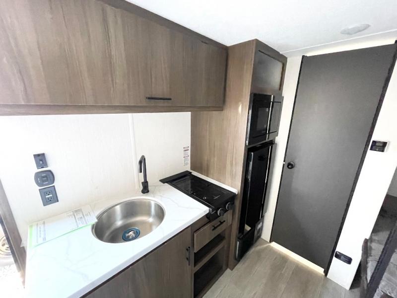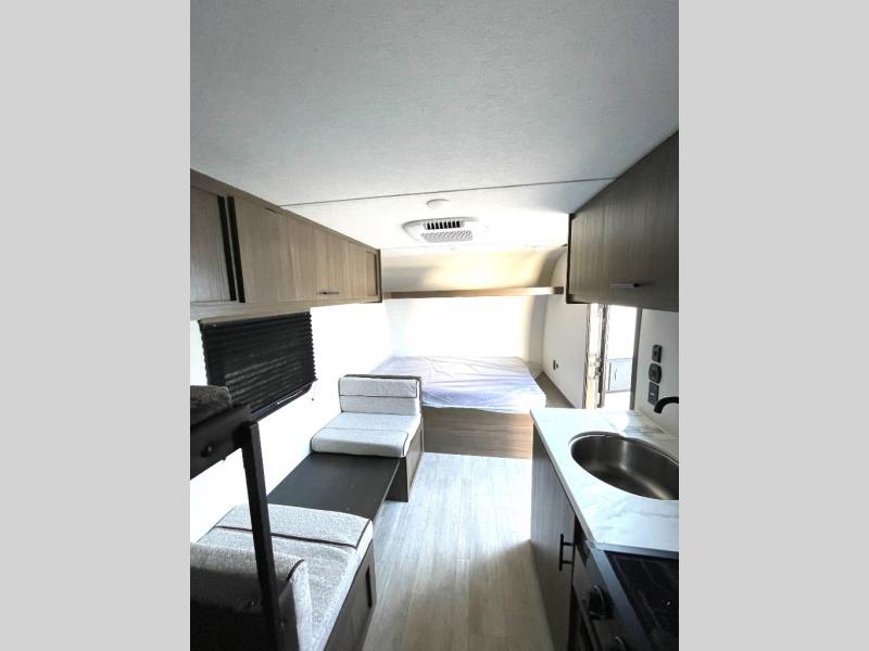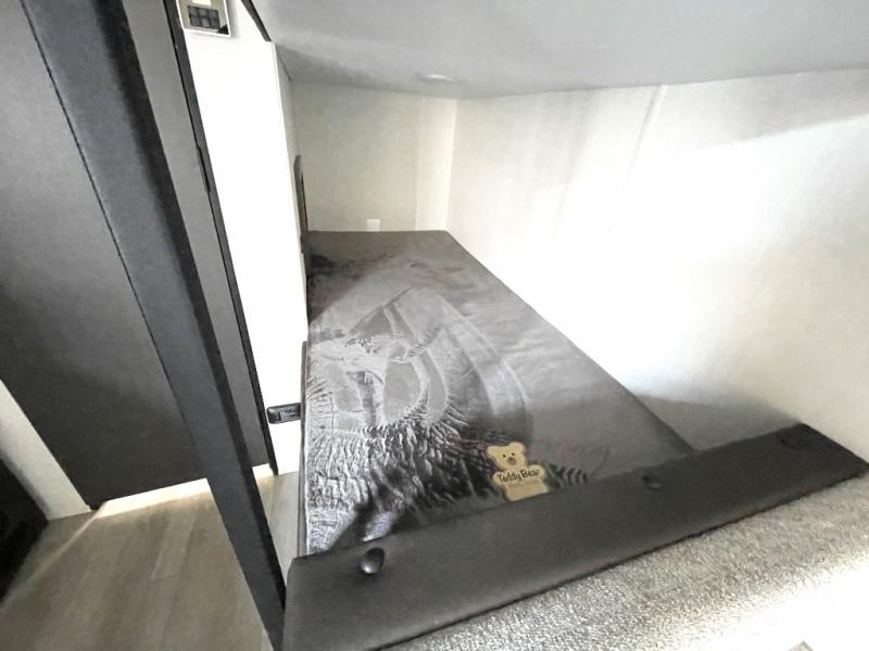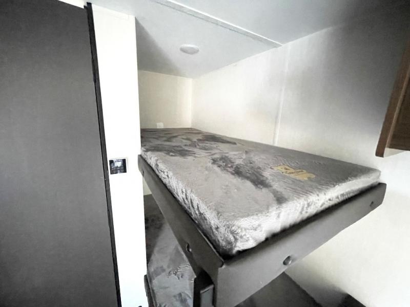 Compact and loaded with comfort and convenience for you to enjoy each and every camping trip! Because this trailer is easily towable, you'll be ready in no time. After a day of hiking, the kids will love sleeping on the bunk beds, and you can sleep on the front camp queen bed. And with enough storage space for your valuables and board games, this trailer makes camping easy!