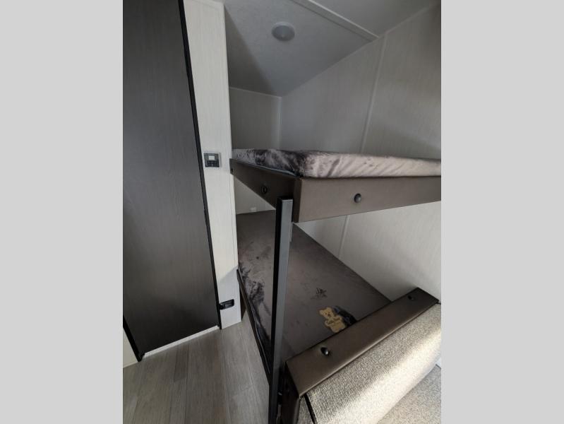 Compact and loaded with comfort and convenience for you to enjoy each and every camping trip! Because this trailer is easily towable, you'll be ready in no time. After a day of hiking, the kids will love sleeping on the bunk beds, and you can sleep on the front camp queen bed. And with enough storage space for your valuables and board games, this trailer makes camping easy!